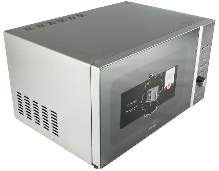 Стальной корпус Steba MIC 3010 выполнен в сером цвете. Лицевая панель — полностью из закаленного стекла с зеркальным покрытием. Дизайн устройства подчеркнуто строгий и минималистичный.