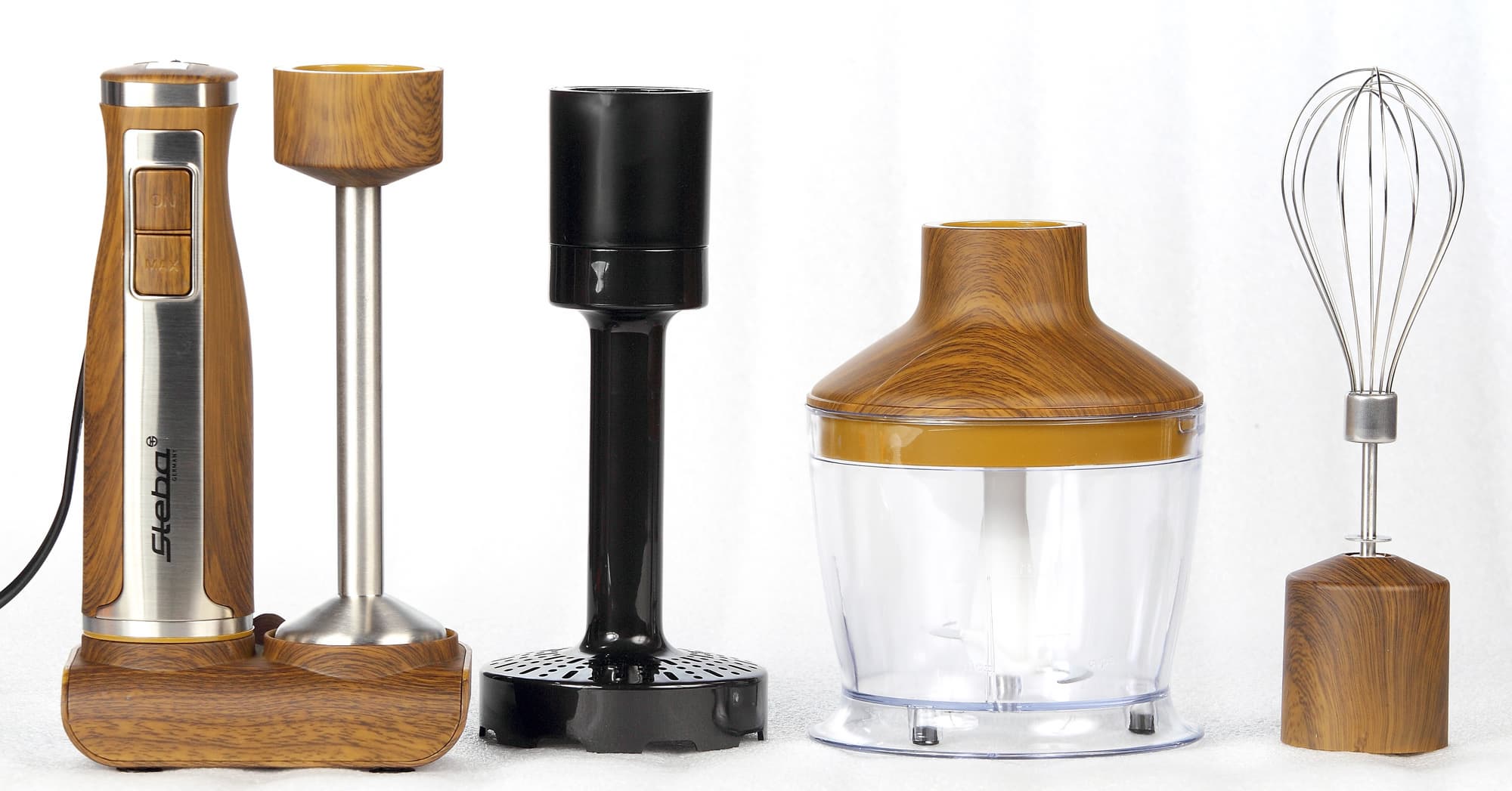 Блендер Steba MX-30 отличается чрезвычайно привлекательным внешним видом и необычным «экологичным» дизайном, наличием подставки (одновременно являющейся контейнером для хранения насадок), нескольких дополнительных насадок, расширяющих функциональность прибора.