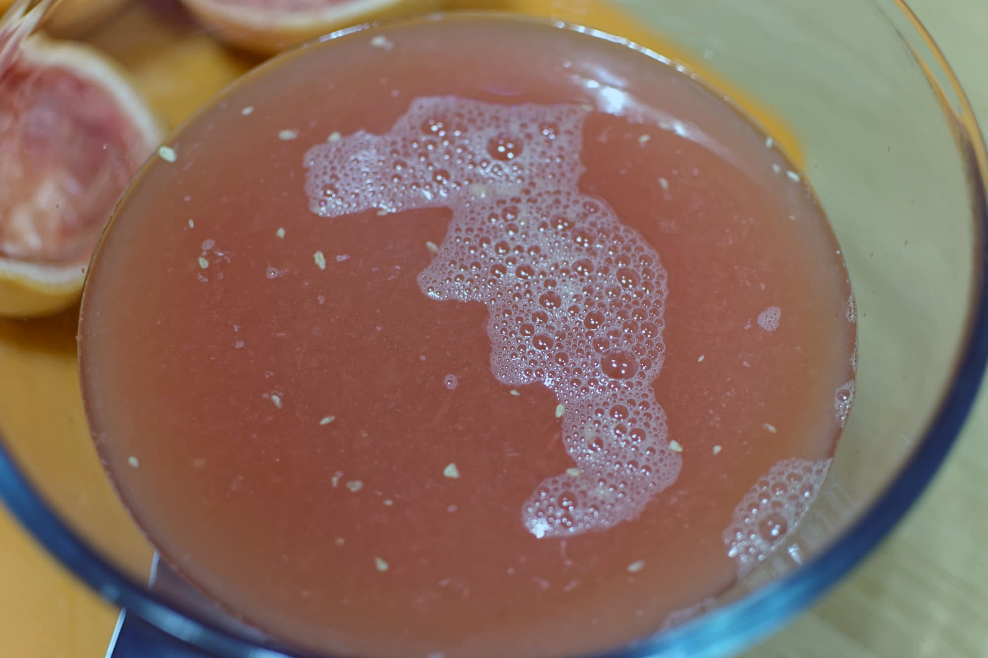 Но, к счастью, в кулинарии имеют значение не только количественные характеристики. Нас очень сильно заинтересовал тот момент, что соки из Steba ZP 2 и шнековой соковыжималки даже выглядели совершенно по-разному. Вот сок из соковыжималки для цитрусовых: