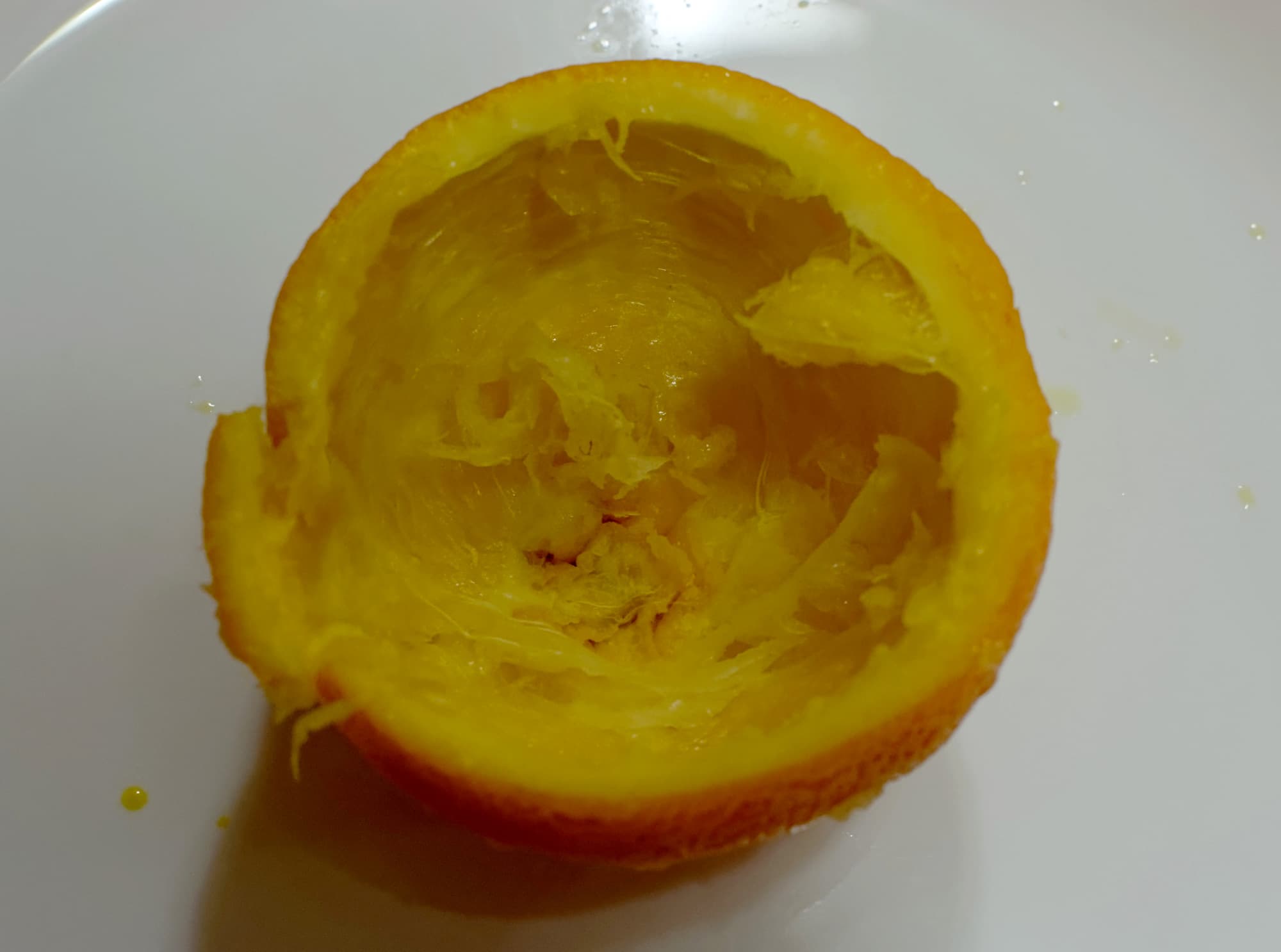 622 грамма сока из 1626 граммов неочищенных апельсинов, что соответствует эффективности 38%, то есть на 5% выше, чем в предыдущем тесте. Если вам не жалко времени, то +5% выхода только за счет оптимизации — это весьма неплохой результат.