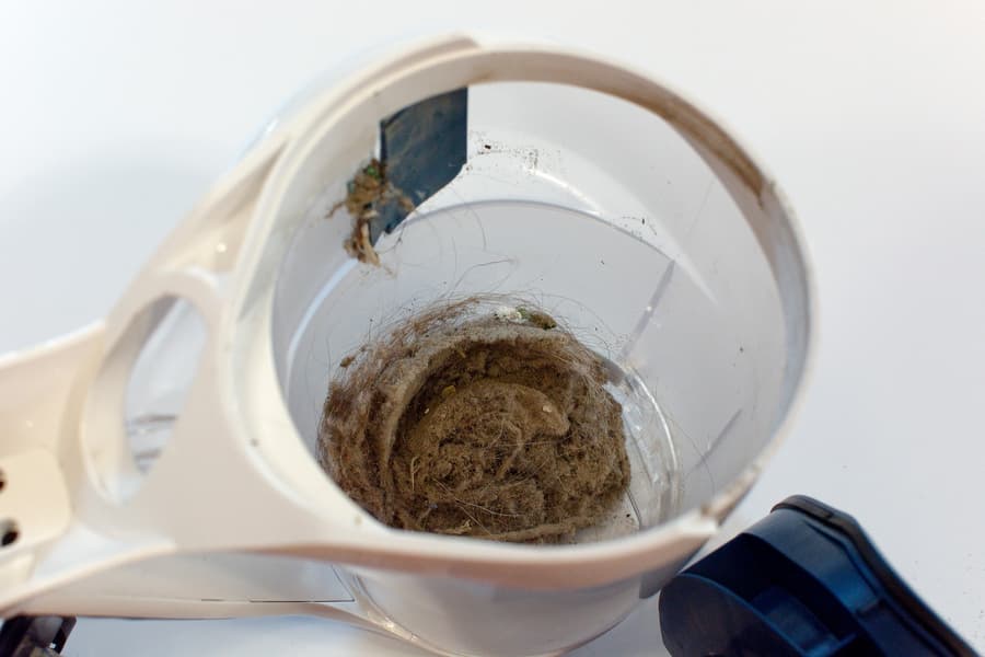 Вытряхивание мусора, как мы уже упоминали выше, происходит путем полной разборки пылесборника.
