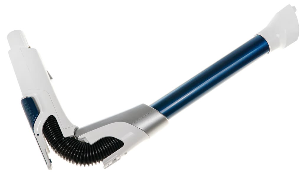 Сгибающаяся удлинительная труба действительно позволяет ловко «пролезать» в различные труднодоступные места и придает процессу уборки существенный дополнительный комфорт: многие вещи, которые в иных случаях мы бы передвигали с места на место, в этом случае можно было не трогать. Кнопка, переводящая трубу в гибкий режим, находится в удобном месте, а в выпрямленное положение труба защелкивается сама после полного выпрямления — все интуитивно понятно и естественно. Полноценно описать наши впечатления словами сложно, можем только сказать, что тестируя те пылесосы, где такой функции нет, мы точно будем по ней скучать.