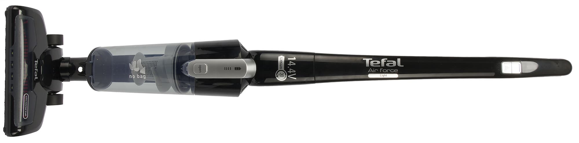 Tefal Air Force Light хорошо сбалансирован, удобно лежит в руке, легко управляется. Небольшой вес прибора и удобная конструкция шарнира единственной насадки обеспечивает хорошую маневренность, и, следовательно, неплохое качество уборки.