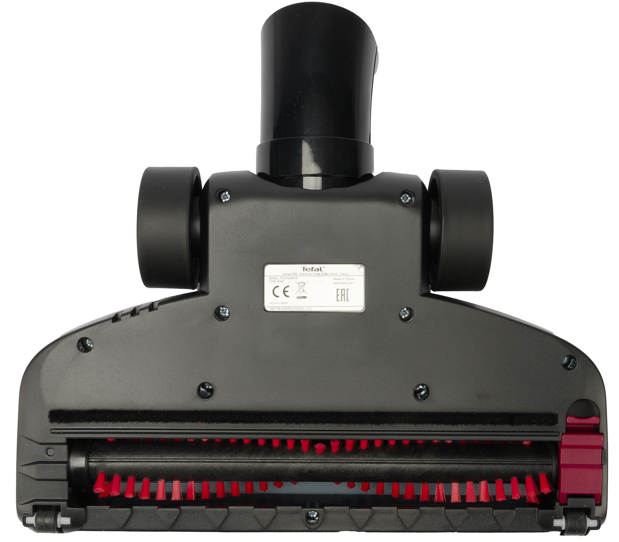 При уборке пола основной вес пылесоса приходится на два больших колеса с резиновым покрытием, расположенных в «пятке» насадки. Для облегчения скольжения в передней части добавлена пара маленьких роликов.