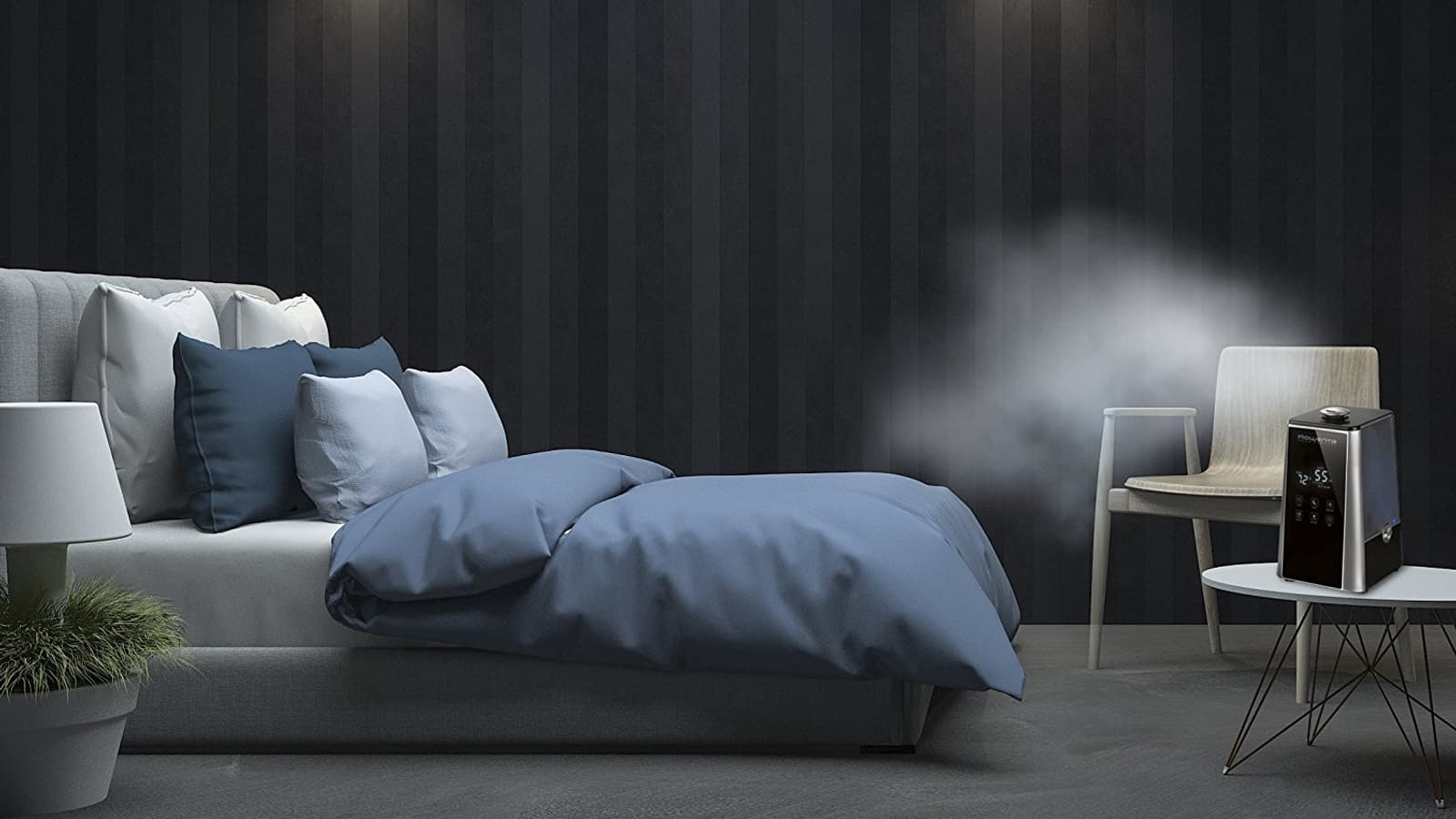 Резервуар для воды рассчитан на рабочий объем от 1,9 до 5,86 литров и при максимальном заполнении обеспечивает увлажнение в течение ночи и всего утра. Отметок на поверхности бачка нет, но благодаря внутренней подсветке уровень воды легко увидеть, а датчик подаст сигнал при нехватке воды и автоматически отключит прибор. Подсветка дисплея достаточно яркая, чтобы легко различить символы при свете, а спустя 5 секунд бездействия она становится более слабой, чтобы не привлекать к себе внимания даже в темноте.