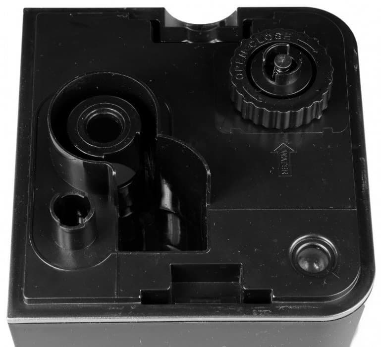 Было бы проще наполнять резервуар без разбора увлажнителя, просто откручивая крышку и доливая воду сверху. Когда несешь его к крану подлить воды, то капли с нижней части падают на пол. В процессе набора воды держать на весу бачок не хочется, и логично поставить его вверх дном, но потом придется аккуратно поднимать и перехватывать снова за ручку. Отдельная крышечка сверху тоже вызвала некоторое недоумение как лишняя деталь, которую приходится снимать, откладывать и ставить обратно. Возможно, эти недочеты следует считать жертвами во имя эстетики.