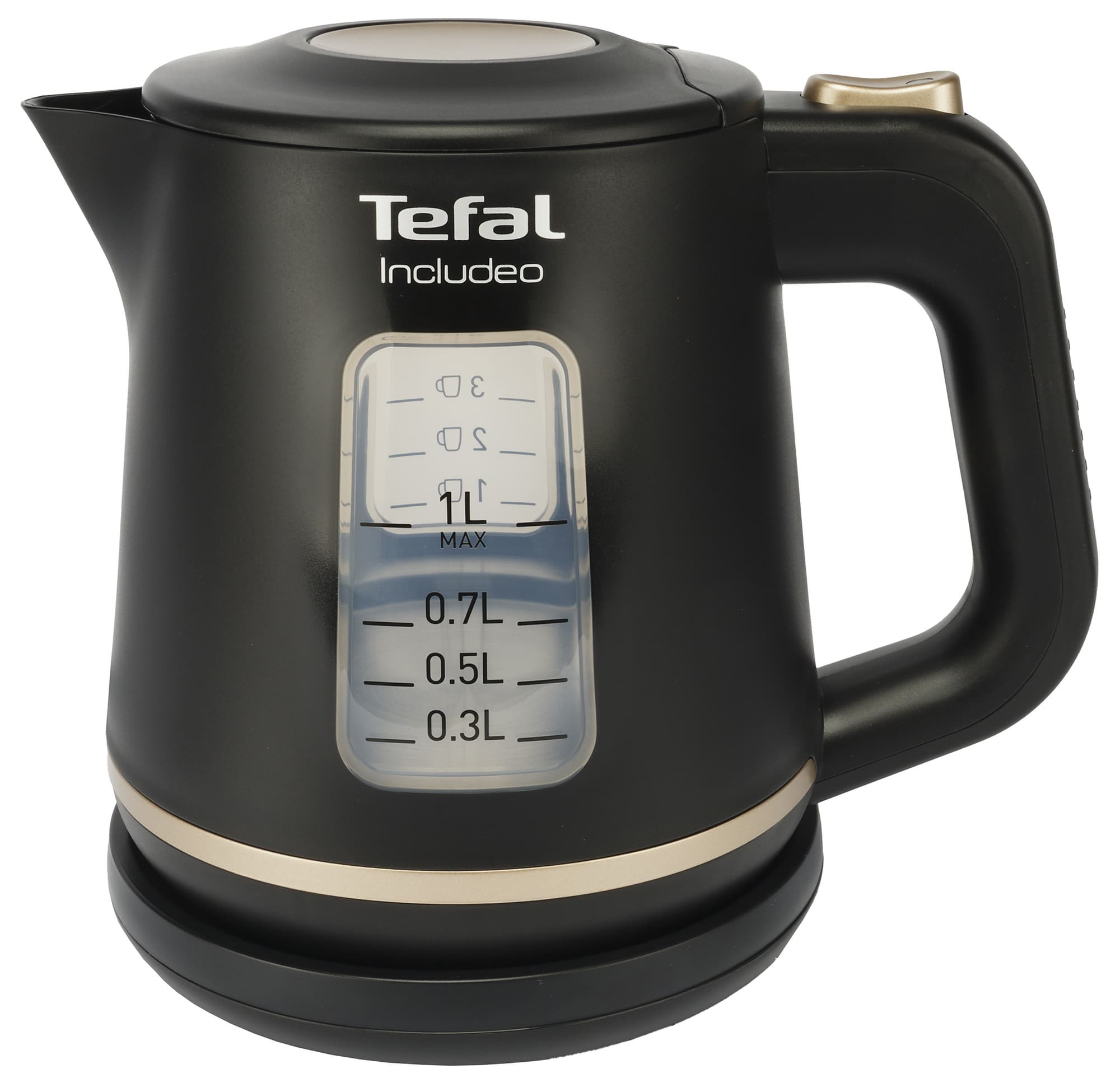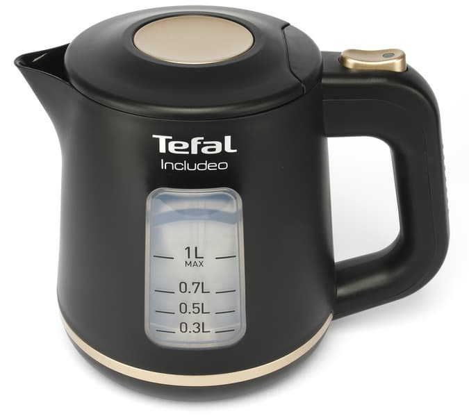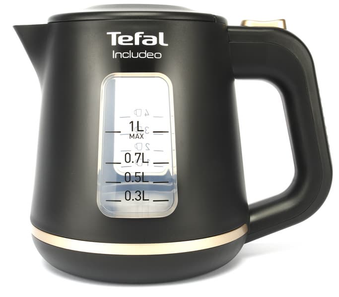 Tefal Includeo KI533811 — это небольшой и простой электрический чайник, имеющий два смотровых окошка и одну кнопку управления. Другими словами — мечта многих пользователей, уставших от перегруженных функциями устройств.
