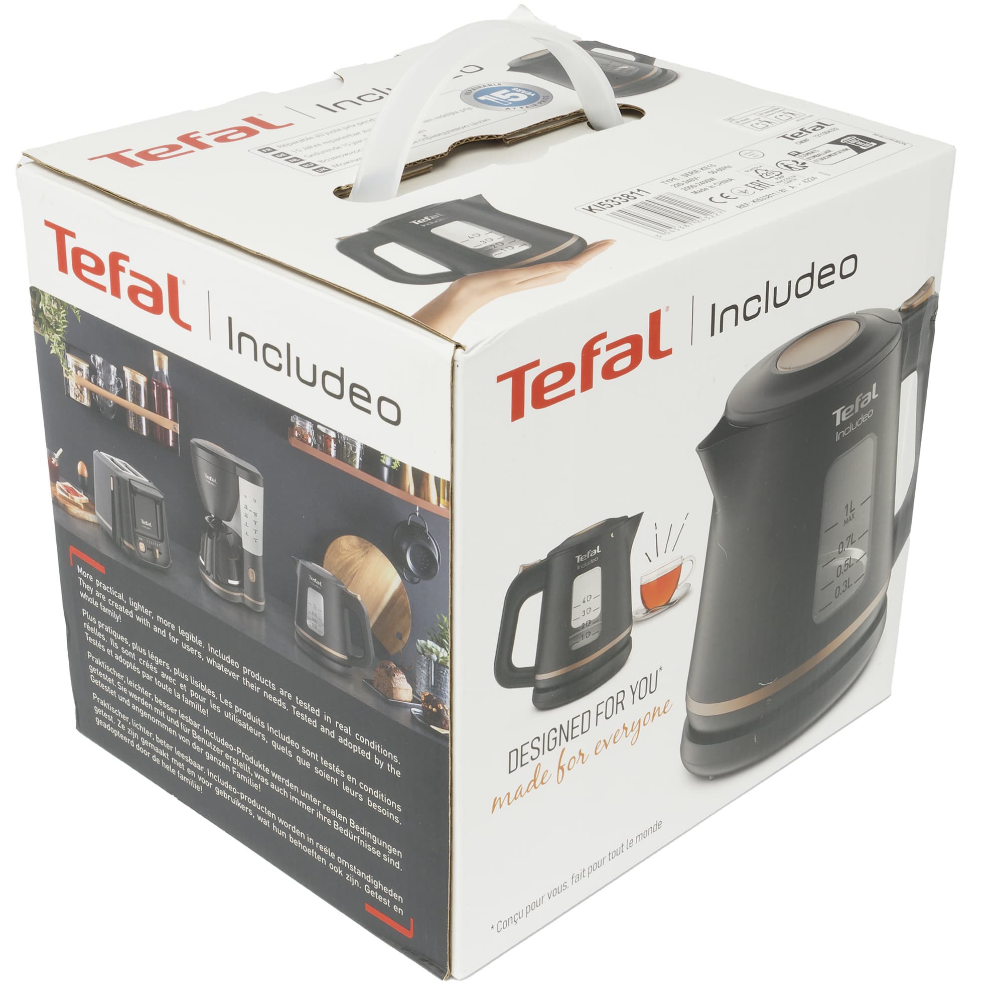 Электрический чайник Tefal KI533811 относится к стильной серии простых приборов Includeo. Серия примечательна тем, что каждый прибор в ней выглядит миниатюрно, эстетично и имеет минимум кнопок управления — идеальный вариант для любителей минимализма и качества.