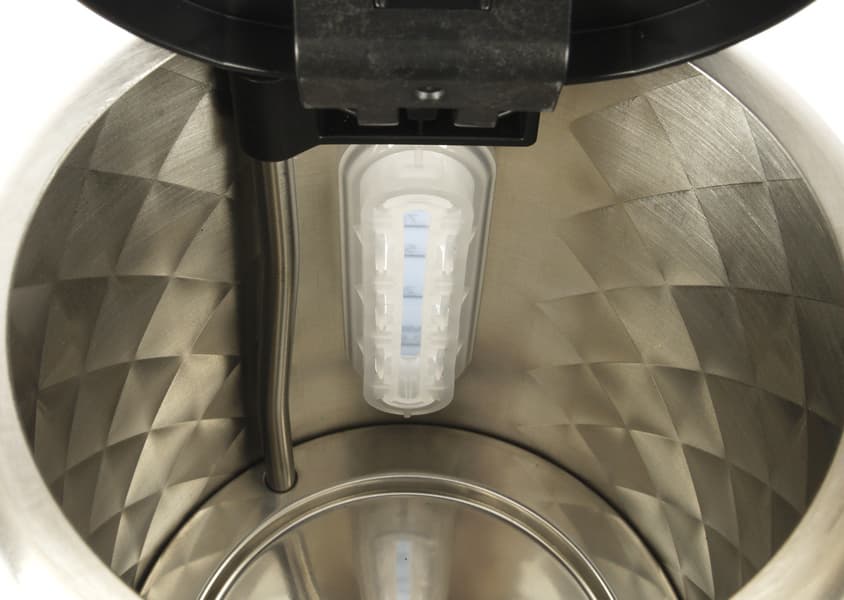В носике у чайника есть съемный фильтр с довольно крупными круглыми отверстиями, предназначенный для защиты от попадания накипи в чашку или в заварочный чайник при наливании воды.