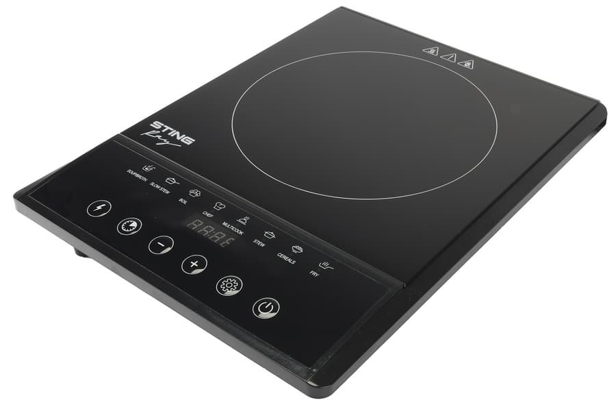 Таких плиток полно на маркетплейсах, и одну из представительниц этого семейства — StingRay ST-HP3521A — мы совсем недавно тестировали. У нее стандартный для этого вида плиток набор функций: таймер, регулировка мощности от 60 до 2000 Вт и 8 автоматических программ. Она оставила очень неоднозначное впечатление. С одной стороны, на ней можно приготовить почти любое блюдо и разместить посуду любого диаметра из разных материалов, в том числе из алюминия. Плитка компактная, быстро охлаждается, легко очищается, интуитивно понятно управляется, выглядит хорошо. Однако тест показал недостоверность технической информации в инструкции: например, указанная на дисплее мощность может отличаться от реальной на 900 Вт, а заявленной максимальной мощности в 2000 Вт зафиксировать не удалось ни в одном режиме. Сами авторежимы не подходят под поставленные задачи и пользователю придется приспосабливаться. Например, сварить бульон в одноименной программе нам не удалось, так как жидкость не закипала, и пришлось для этого использовать программу для тушения.