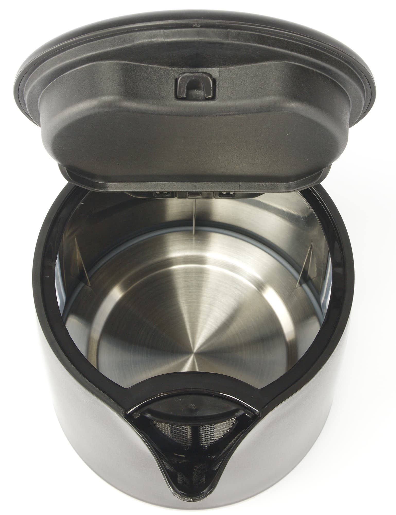 Двойные стенки выполнены из термостойкого пластика снаружи и боросиликатного стекла внутри, что обеспечивает не только сохранение тепла, но и защиту от ожогов при случайном прикосновении к корпусу прибора. Крышка легко открывается нажатием на никелированную кнопку на ручке чайника: все удобно.