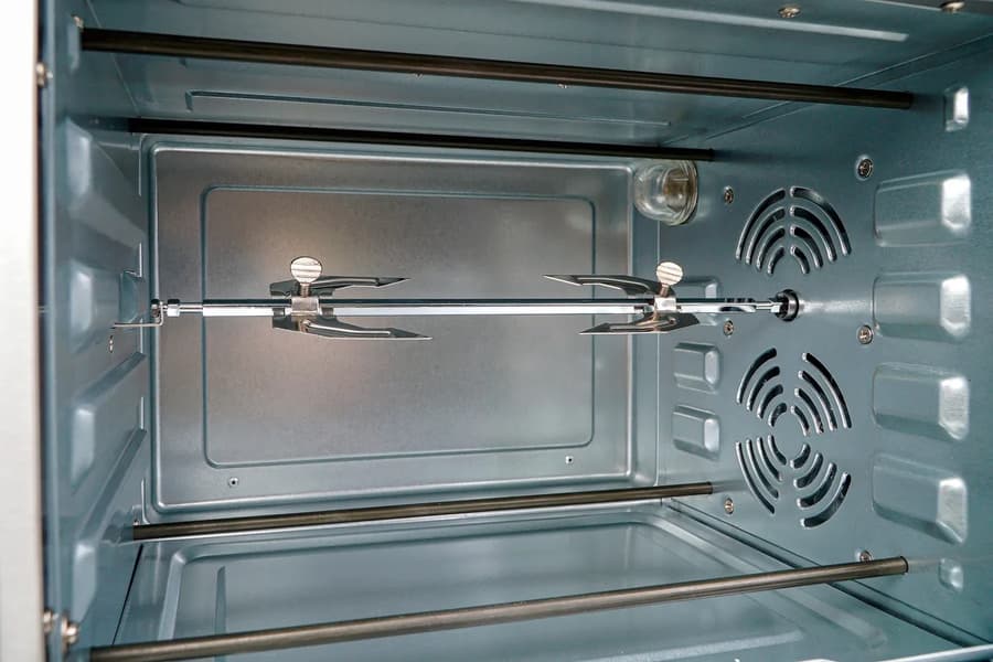 Хотя обзору этого прибора уже несколько лет, он успешно продается и стоит относительно недорого, учитывая его неоспоримые достоинства. Это редкий случай, когда мини-печь невысокой стоимости и очень компактного размера (объем камеры 20 л) имеет функцию конвекции, большой диапазон температур, внутреннее освещение и возможность использовать печь в качестве роторного гриля: это позволяет комбинация нагрева тэнов, наличие вертела, обдува и разогрев до 250 °C.