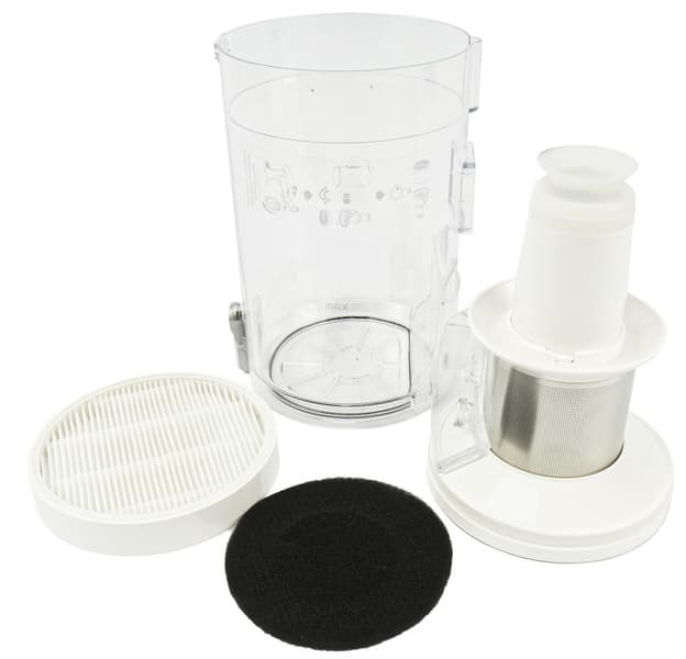Простая и доступная модель, легкая и удобно лежащая в руке, хорошо сбалансированная и позволяющая убрать пространство под мебелью, не сгибаясь в три погибели. Модель действительно одна из самых легких: с трубкой и насадкой для пола пылесос весит 2320 г, а в минимальной конфигурации — 1485 г. При испытаниях он показал среднюю мощность всасывания, что компенсируется эргономичной конструкцией и эффективной работой насадки для пола. Всего в комплекте три насадки (моторизованная для пола и две обычных). В мотонасадке можно установить сменный велюровый ротор для тщательной очистки твердых гладких поверхностей. Удлинительная трубка снабжена шарниром, поэтому ее можно складывать почти пополам. Насадки для чистки мягкой мебели нет (можно докупить у производителя). Насадки придется хранить отдельно, мест для крепления их на базе или на пылесосе нет.