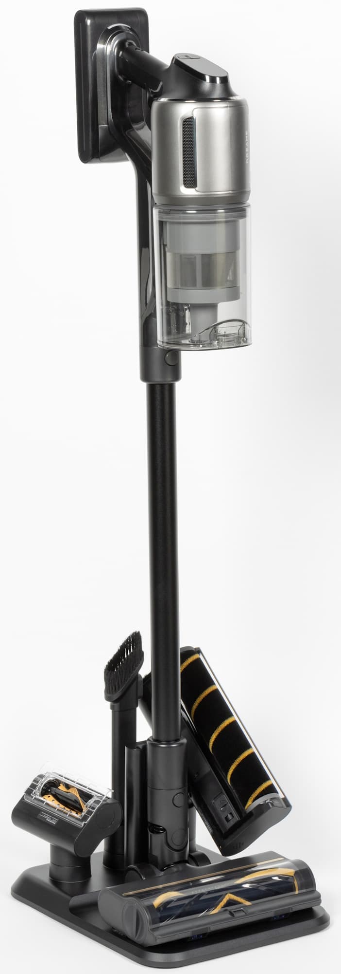 К сожалению, не все насадки и аксессуары могут компактно храниться на базе: многие придется хранить отдельно, единой системы хранения нет. Но все же по разнообразию возможностей сухой уборки эта модель — тоже один из лидеров.