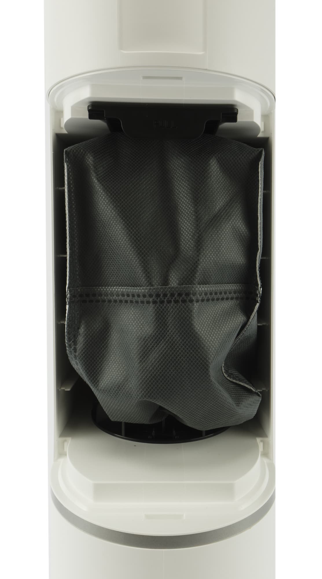 Существенно более дорогая модель, оснащенная станцией самоочистки для сбрасывания пыли и мусора из контейнера-циклона в установленный в базу мешок. Пылесборник не требуется опустошать вручную: достаточно установить пылесос на базу и нажать кнопку самоочистки. Во время процедуры прочищаются также и фильтры пылесоса, поэтому он требует меньше расходников и вообще внимания к себе вне работы. Кроме того, в комплект входит второй сменный аккумулятор, установив который можно продлить время уборки вдвое. Например, пылесосить на самой высокой мощности не 12,5 (таков результат измерений для одного аккумулятора), а целых 25 минут. Но обращаем внимание, что максимальная мощность всасывания этой модели в соответствии с нашими измерениями примерно равна средней мощности у модели предыдущей — Lex LXVCS 7073.