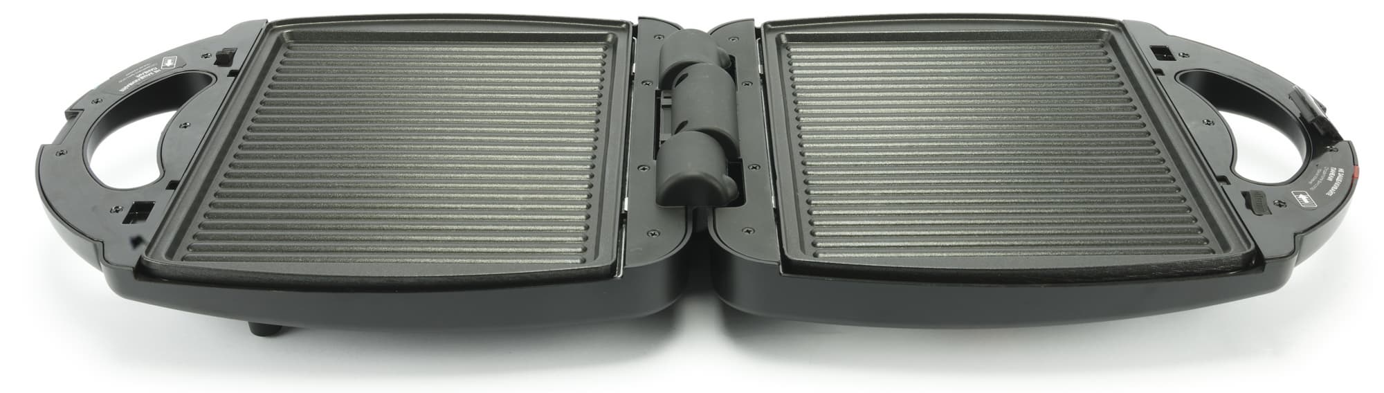 Недорогая альтернатива контактному грилю, бутерброднице и вафельнице — модель со сменными панелями. Она хорошо готовит и не занимает много места. В этом мы убедились, приготовив куриную грудку и баклажаны на гриле, горячие бутерброды и венские вафли (а можно и любые другие). Мы отметили нюанс: нагрев снизу сильнее, поэтому любые готовящиеся продукты лучше переворачивать.