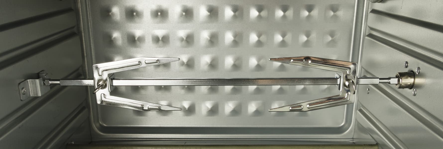 Удачная модель многофункциональной переносной конвекционной духовки с диапазоном температур 40—230 °C и десятью автоматическими программами удивила нас качественной работой и поистине широкой функциональностью. Ведь низкотемпературные режимы в сочетании с таймером на 5 часов можно использовать для ферментирования, приготовления йогурта, сушки, расстойки теста и медленного приготовления. Основное достоинство духовки — возможность готовить в ней и как в классическом духовом шкафу, и как в аэрогриле, и как в шашлычнице (есть вертел). А еще в комплект входит камень для пиццы, корзина для аэрофритюра и есть встроенный гриль!