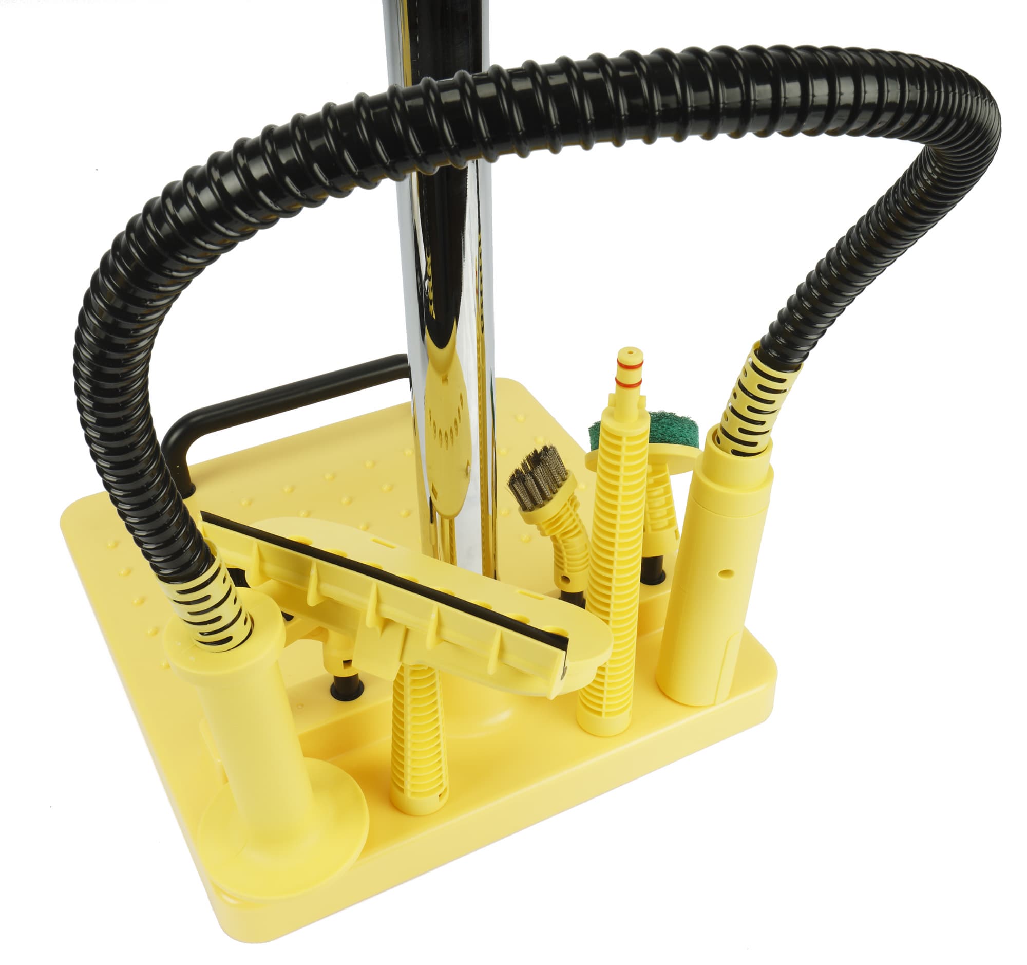 12 различных насадок и аксессуаров, включая большую и маленькую швабры превращают прибор в поистине универсальный помощник не только в уборке, но и в уходе за одеждой и домашним текстилем. При этом пароочиститель удобен и в использовании, и в хранении. Резервуар для воды из прозрачного пластика позволяет контролировать ее уровень. Трубки для превращения прибора в паровую швабру присоединяются к парогенератору интуитивно понятным способом.
