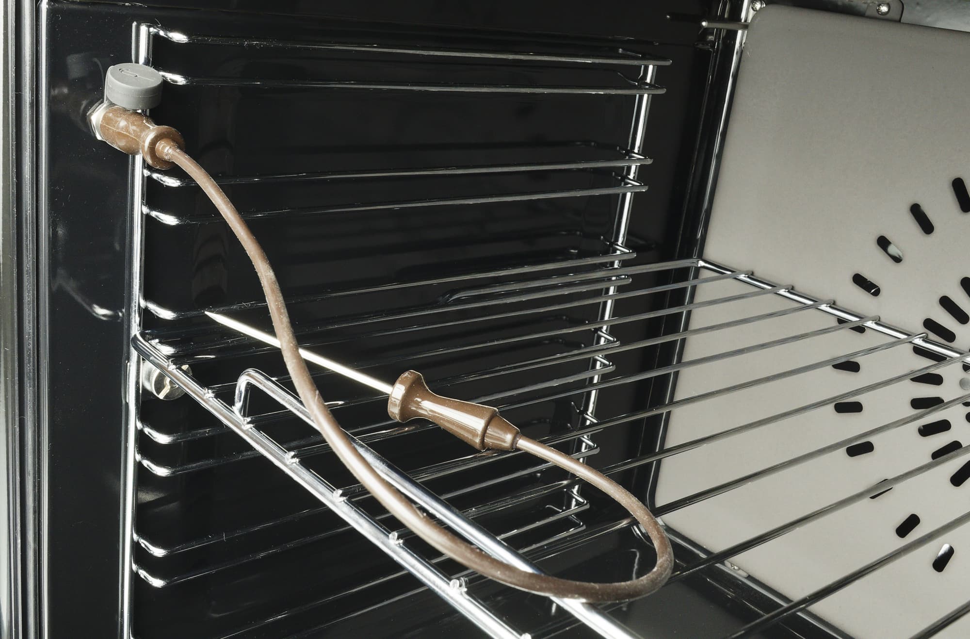 Нижняя граница температуры — 50 градусов, верхняя производителем не указана (можно просто выставить максимум), но наш термощуп засек температуру 250 градусов — это его предел. То есть духовка точно достигает этой температуры, но возможно, и более высокой.