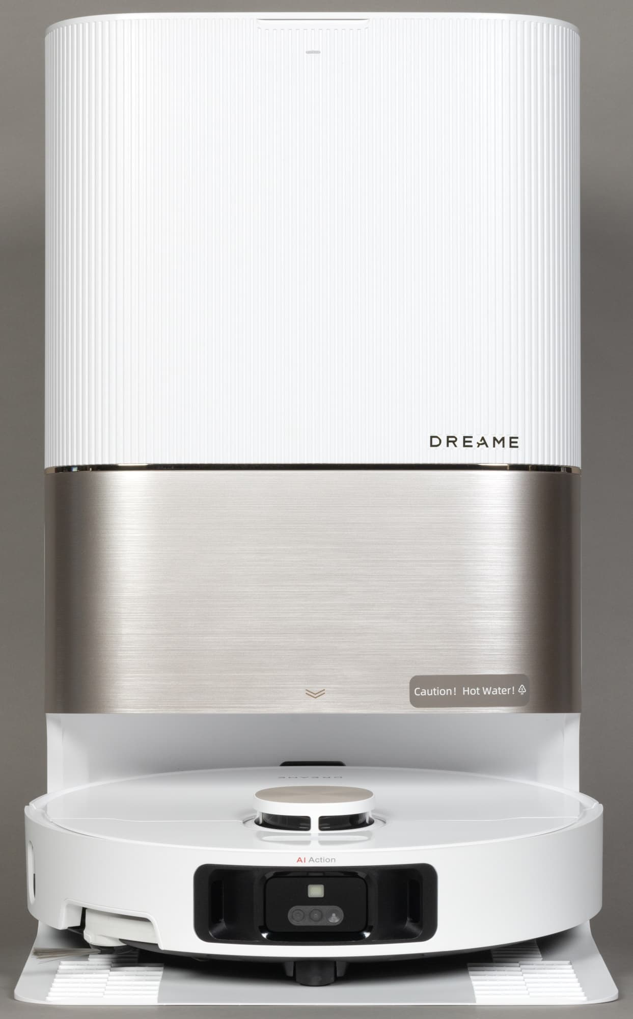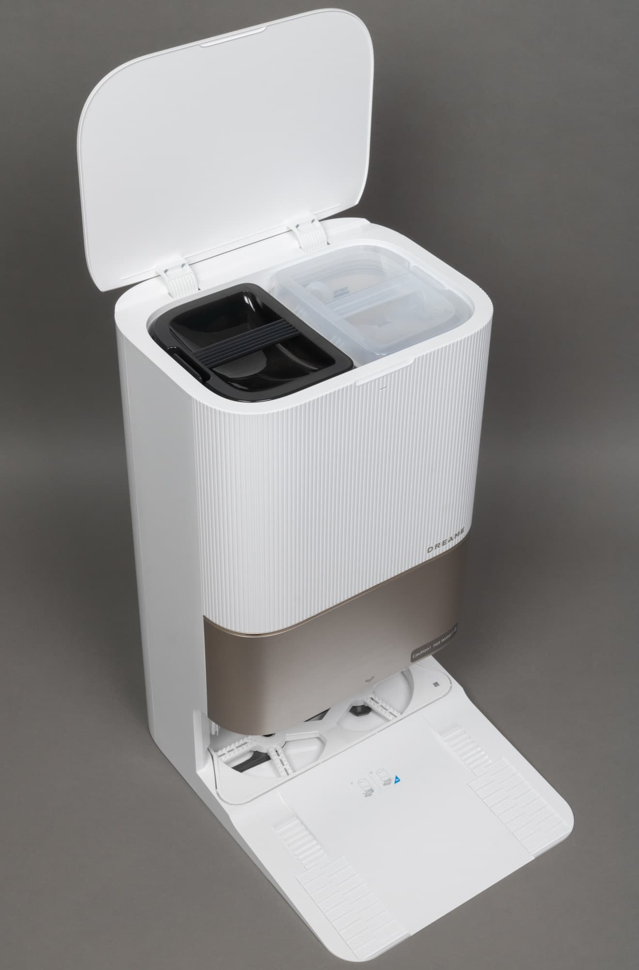 На момент подготовки обзора это был самый дорогой пылесос-робот бренда Dreame. Модель может похвастаться возможностями сухой и влажной уборки, автоматической очистки пылесборника и промывания швабр, а также подключения к водопроводу и канализации для абсолютно автономного обслуживания моющего блока и станции, заправляющей пылесос свежей водой. Отработанная жидкость в этом случае удаляется в канализацию. Хочется надеяться, что это только пока редкость и экзотика, но в дальнейшем станет обычным делом для моющих роботов — как и подключение к водопроводу стиральных и посудомоечных машин. И, конечно, это умный робот, которым можно управлять через мобильное приложение.