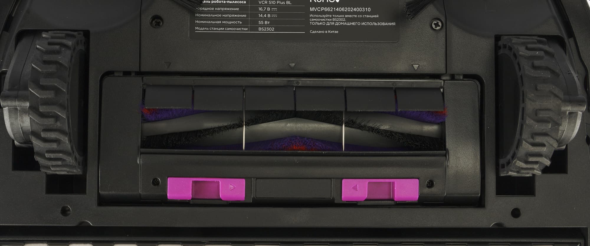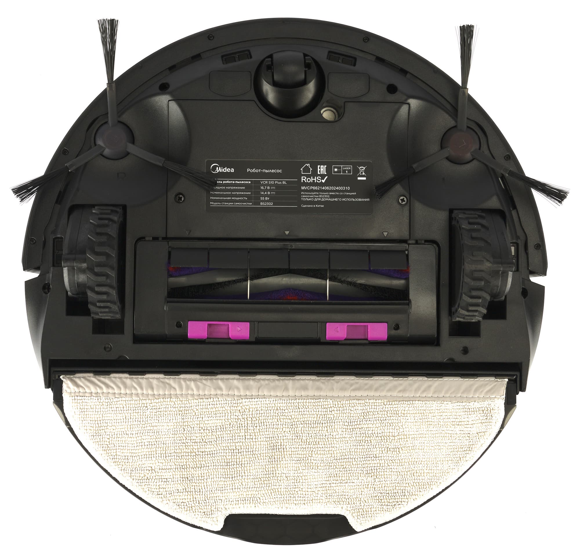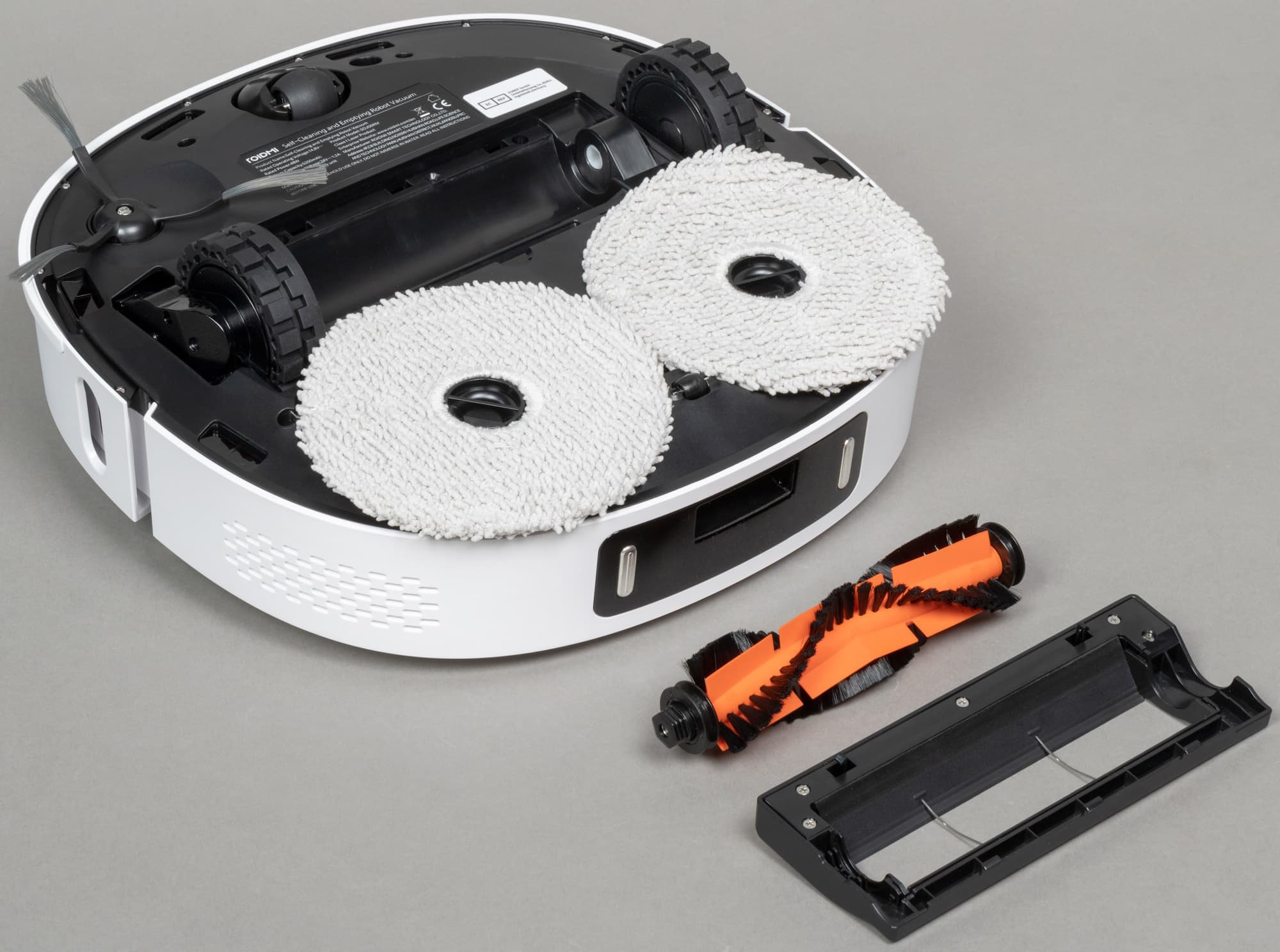 Для влажной уборки к днищу пылесоса на магнитах крепятся две «швабры». Режим влажной уборки не включится, если швабры не установлены. Кроме того, пылесос умеет самостоятельно откреплять швабры и оставлять их на базе и поднимать их при заезде на ковры.