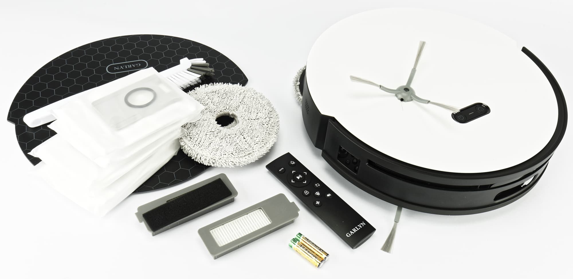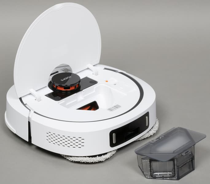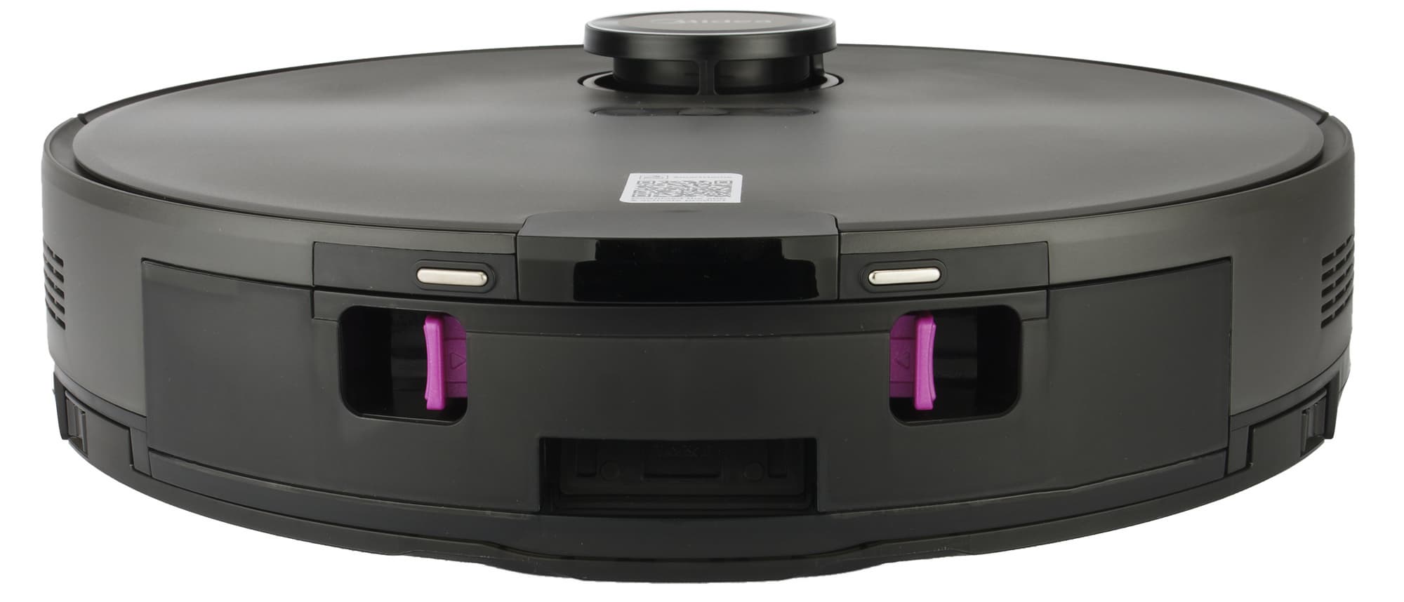 Держатели мопов примагничиваются к корпусу, робот автоматически распознает их и не запускает влажную уборку без них. Подвижный бампер имеет механические датчики столкновений, инфракрасные сенсоры помогают роботу ориентироваться и находить базу. Дополнительный сенсор со стороны боковой щетки позволяет убирать максимально близко к плинтусам. Датчики на «животе» робота видят границы ковра и перепады высот.