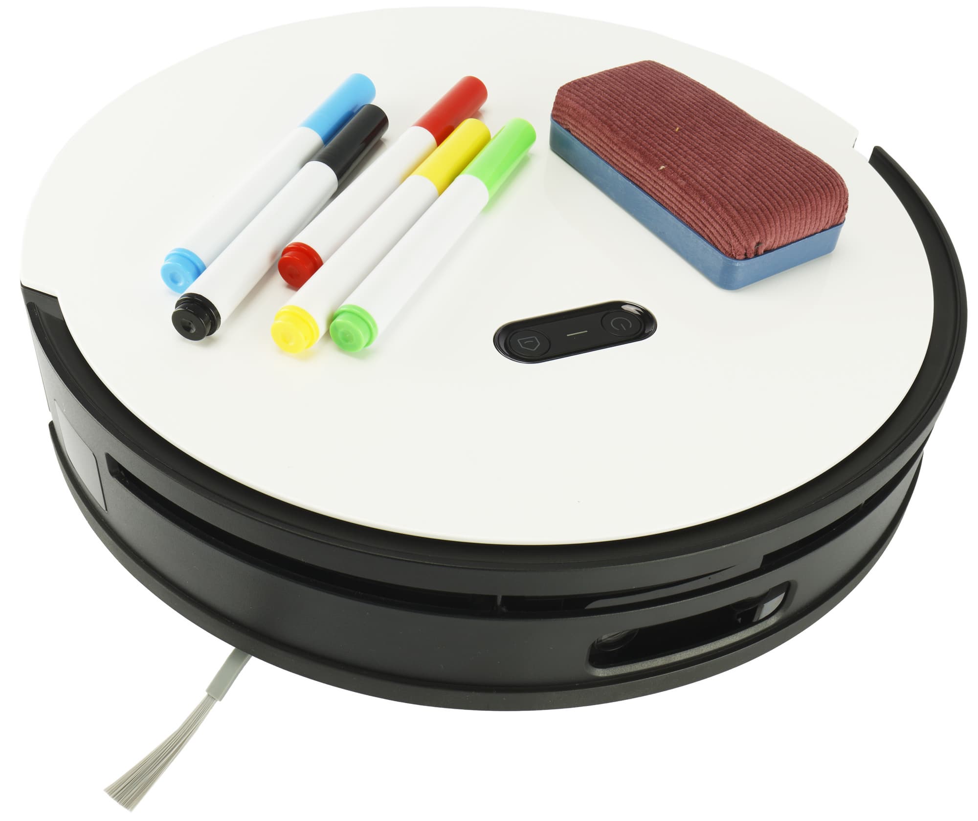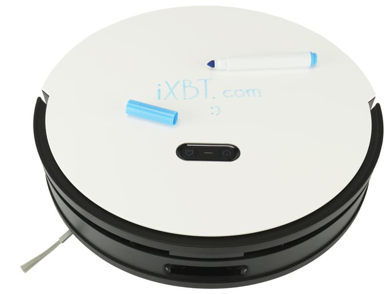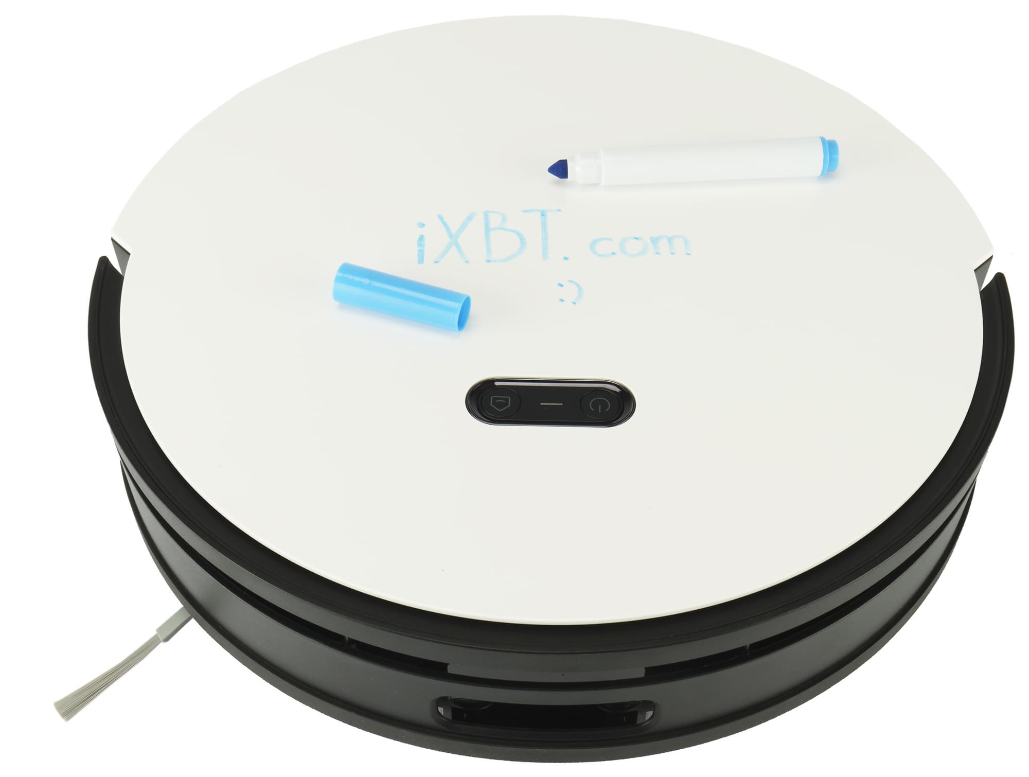 Фишки: конструкция корпуса приспособлена для уборки под низкой мебелью, 314 минут работы без подзарядки, возможность создания собственного дизайна верхней панели робота или использования ее для записей, много расходников в комплекте.
