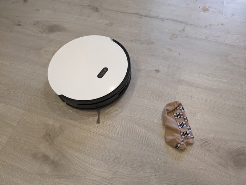 Мы хотели проверить, будет ли робот наматывать провода на щетки — в процессе тестирования такого не случилось. Качество уборки робот продемонстрировал выдающееся: 99,1% мусора было убрано.