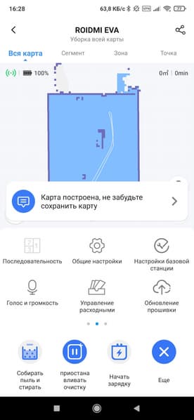 Лидар у нее расположен не в башенке, возвышающейся над верхней панелью, а «смотрит» наружу в прорезь в подвижном элементе. Это уменьшило высоту робота больше чем в полтора раза, поэтому он может убирать под невысокими диванами и шкафами. Это же не дает ей строить карту помещения за секунды: требуется примерно три минуты. Карту можно отредактировать в приложении, там же — настроить всевозможные параметры и сценарии уборки: повторные проходы, ограничение зон, тип уборки, тип перемещения, гибко настроить уборку по расписанию и т. п. Экран смартфона в приложении можно превратить в пульт ДУ, с помощью которого направлять робот в нужное место.
