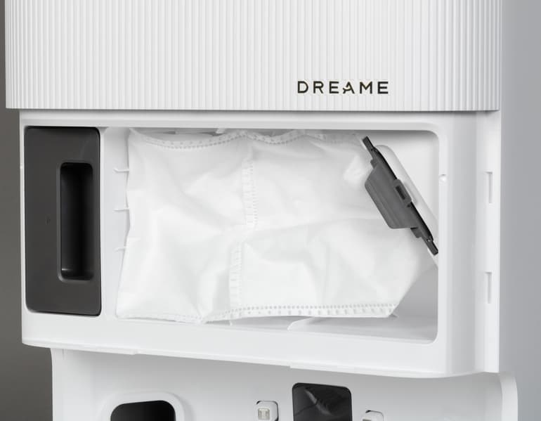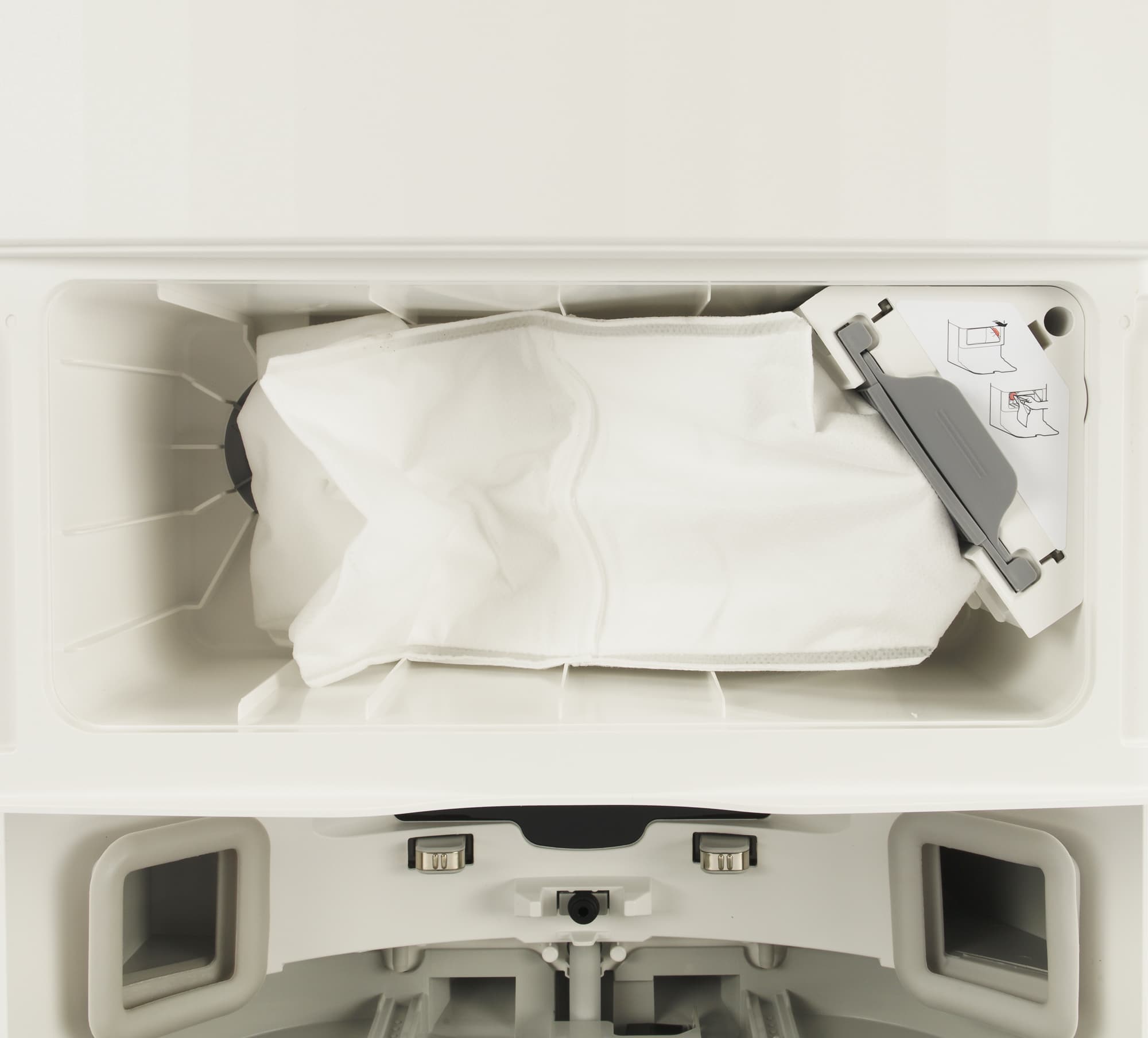 В станцию устанавливается мешок для сбора пыли, в который он вытягивается автоматически из контейнера из фильтров робота. Без правильно установленного мешка самоочистка не включается.
