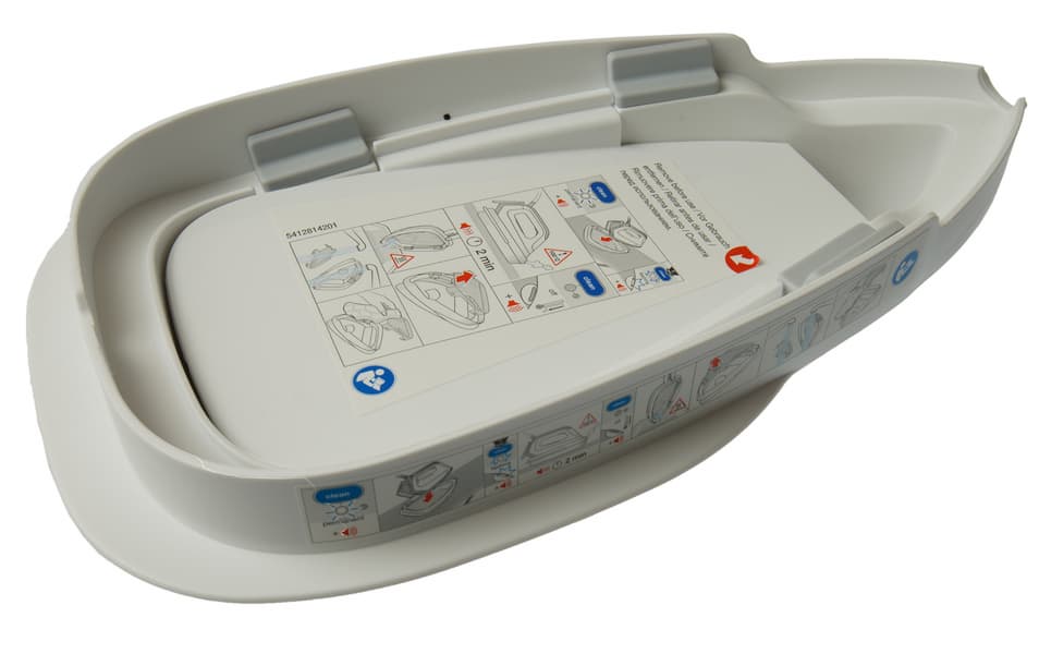 Еще одна особенность — съемный резервуар в форме подошвы утюга для ее очистки. Туда стекает вода после запуска программы очистки от накипи, клавишей «clean». Схема действий нанесена прямо на это приспособление, поэтому у пользователя не будет затруднений при очистке: утюг устанавливается в резервуар, запускается программа — и дело в шляпе. То есть в резервуаре.
