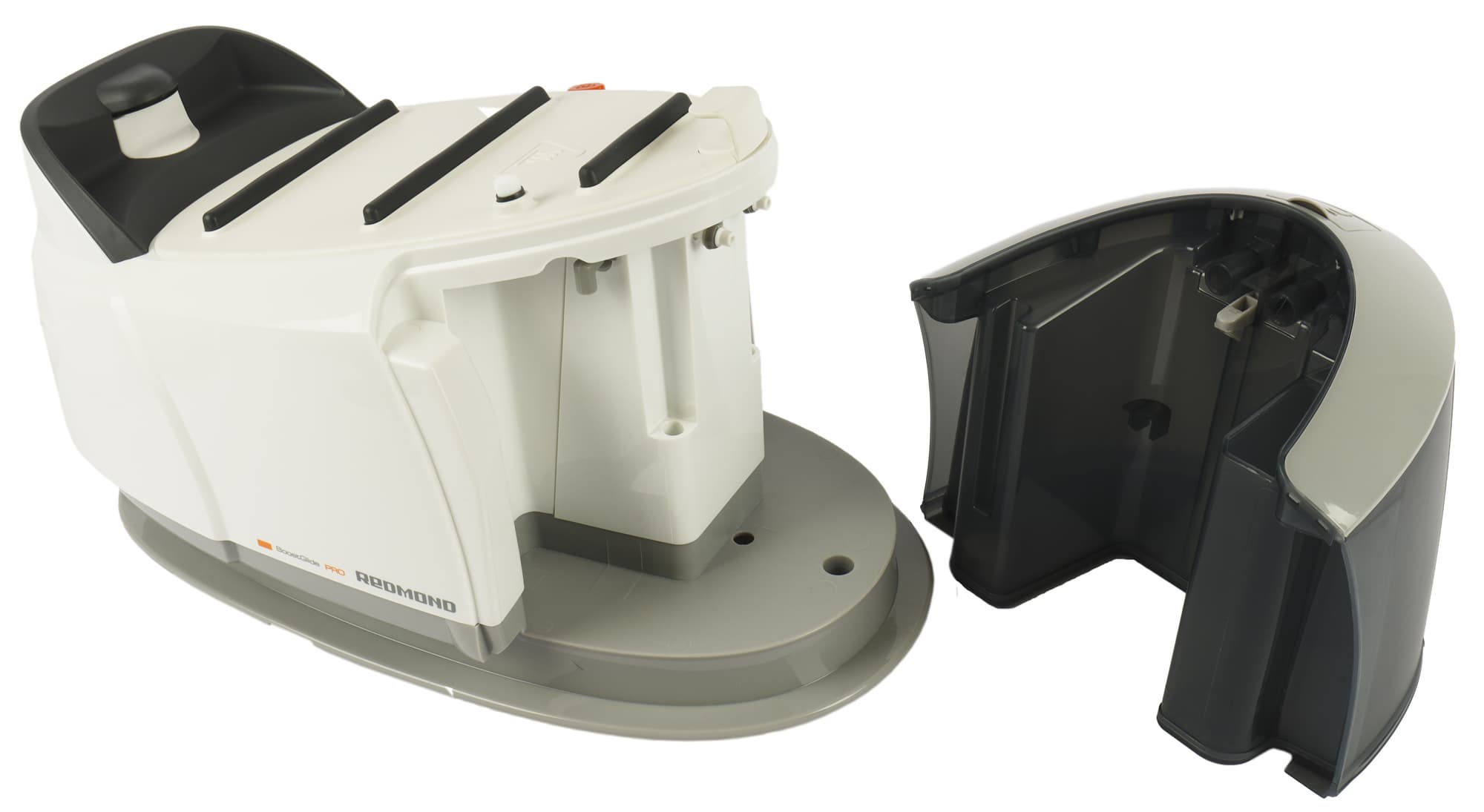 Резервуар для воды легко отсоединяется от базы, переносится за ручку и имеет большое удобное отверстие для залива воды.