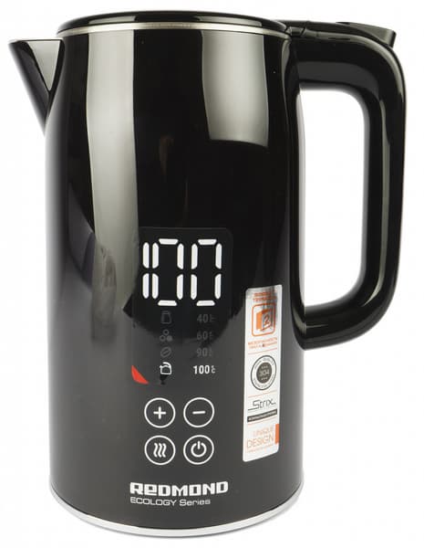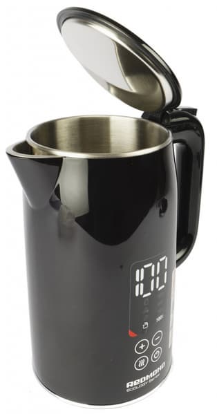 - Redmond RK-G1310D с регулировкой температуры, нагревом воды с точностью до градуса и поддержанием тепла, объем 1,7 л