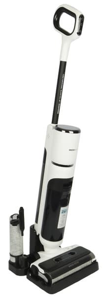Одна из самых универсальных и богато укомплектованных моющих вертикальных моделей может работать разных конфигурациях: моющего пылесоса, стика для сухой уборки, ручного портативного пылесоса. От младшей модели бренда этот пылесос выгодно отличается более емким аккумулятором. Важно, что цилиндрический аккумулятор собран из шести стандартных батарей емкостью 4800 мА·ч и при необходимости его можно перепаковать, убрав вышедшие из строя элементы и установив новые без замены всего блока.
