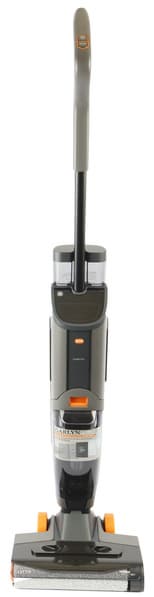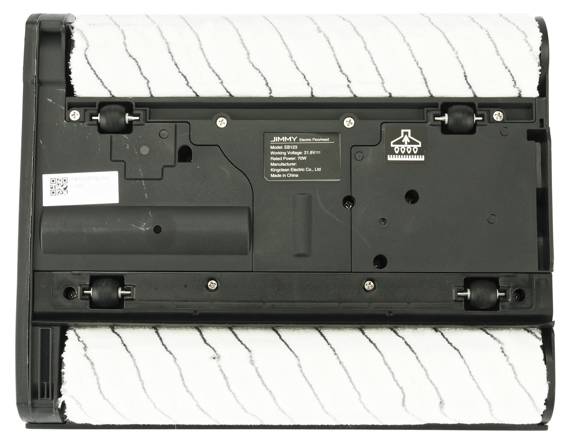 В верхней части корпуса расположен моторный блок с несъемным аккумулятором и дисплеем. Спереди к моторному блоку крепится резервуар для грязной воды с системой фильтрации, а бак для чистой расположен сзади. Вода подается на пол и засасывается вместе с грязью: воздушная струя с водой и мусором попадает в резервуар для грязной воды через центральную шахту. Вода и сор остаются на дне резервуара, а на выходе из него воздуха установлен HEPA-фильтр.