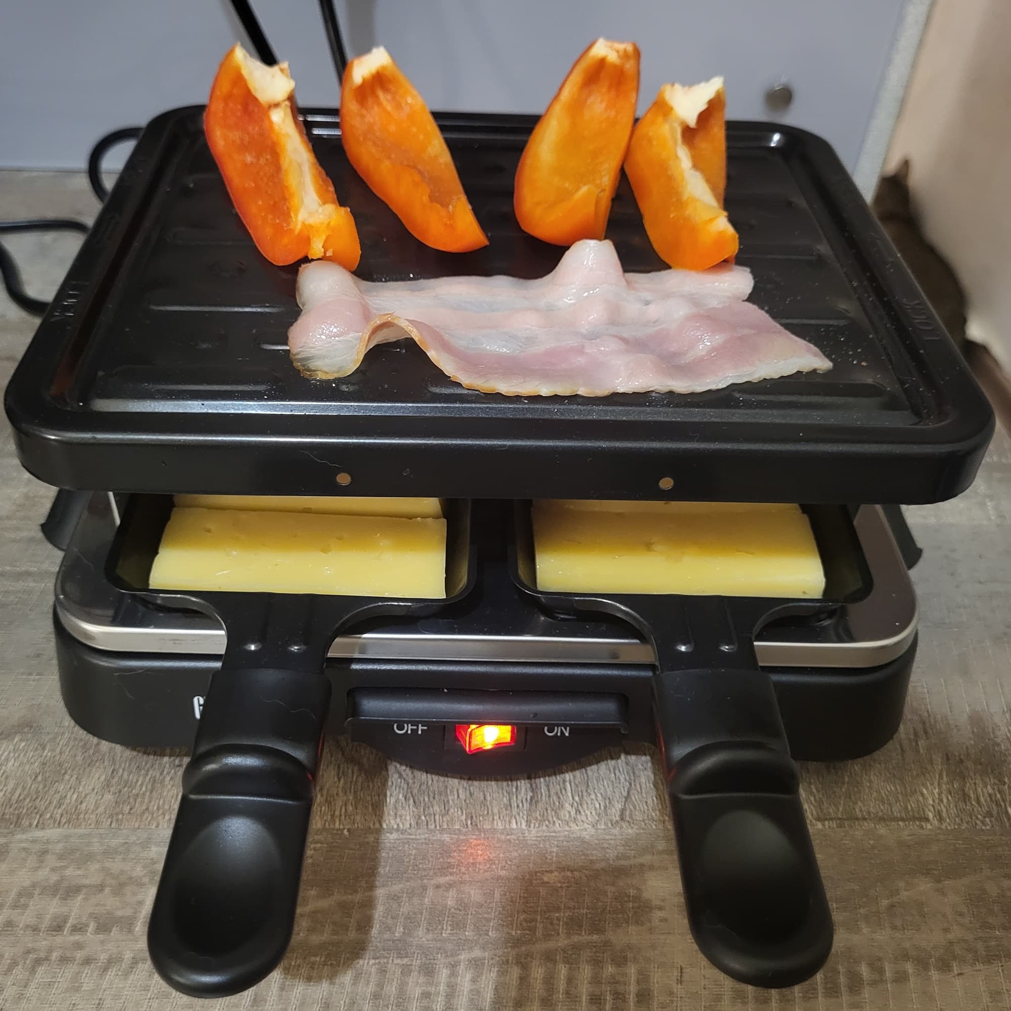 Миниатюрный прибор для приготовления раклета (блюд с расплавленным сыром) и горячих бутербродов (не сэндвичей, а с сыром сверху). Раклетница произвела неоднозначное впечатление (не всегда хватает мощности, пожарить омлет или стейк быстрее на сковородке), но отлично справилась именно с приготовлением раклета и сделала правильные горячие бутерброды, которые так любят дети.