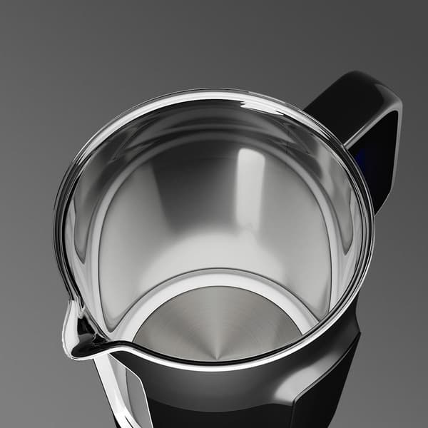 Модель понравилась нам не только наличием 6 автопрограмм и режима подогрева, но и продуманной системой безопасности. Благодаря двойным стенкам корпус снаружи нагревается слабо, панель управления можно заблокировать. Меняющая цвета подсветка панели и чайника делает его эффектным. Встроенный термометр очень точный, наши измерения это подтвердили. И кстати, несмотря на отсутствие программы для детского питания (40 градусов), благодаря информативной панели можно просто отследить нагрев воды до этой температуры. Съемная крышка очень удобная. Вода долго не остывает даже без подогрева (через час после закипания температура составляет 74 градуса). Правда, есть и минус: полезный объем составляет 1,427 л, а не 1,5, как заявлено.