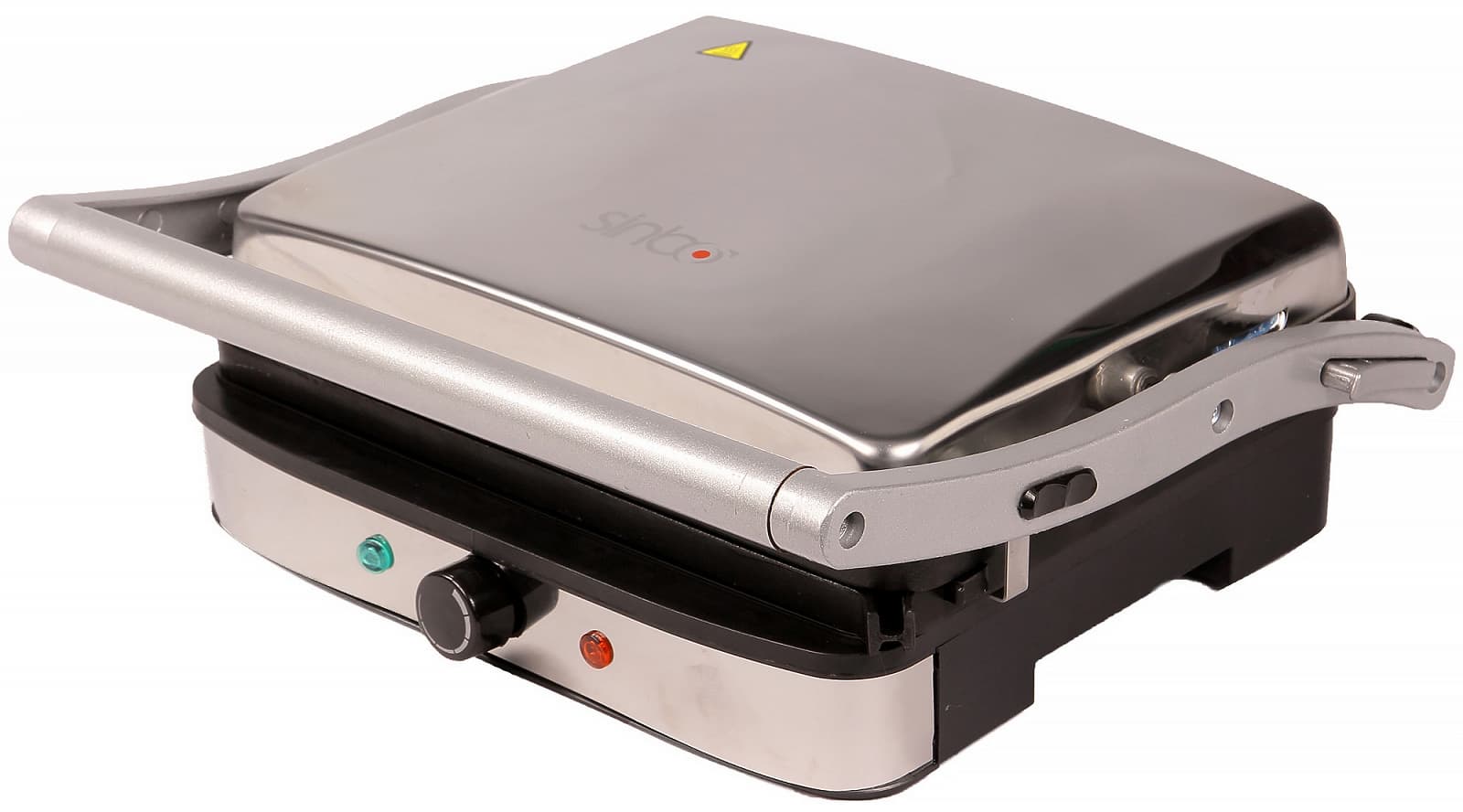 Еще один бюджетный гриль, похожий на предыдущие устройства — Smile KG 1046, имеет схожую функциональность, но отличается особенностью, которая присуща, как правило, более дорогим моделям. Речь идет о наличии механизма «плавающей» верхней панели, позволяющей ей располагаться параллельно нижней. Благодаря этому продукты, помещенные между панелей, сдавливаются не под углом, а параллельно, что, конечно, не может не сказаться на качестве прожарки в положительную сторону.