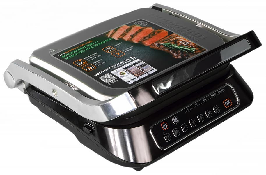 «Умные» грили на сегодняшний день являются наиболее технически продвинутыми устройствами. Благодаря датчику, определяющему расстояние между панелями (то есть автоматически замеряющему толщину куска мяса, помещенного в гриль), они позволяют с довольно высокой точностью готовить стейки нужной степени прожарки. Единственная ложка дегтя тут — потенциальный выход из строя датчиков, отвечающих за измерение расстояния. Не то чтобы данная проблема была повсеместна, однако если в приборе есть дополнительный элемент — он рано или поздно может сломаться, в чем можно убедиться, почитав отзывы пользователей на популярных сетевых ресурсах.