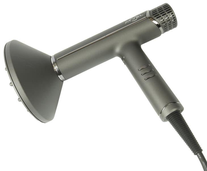 Хороший фен никогда не будет лишним, а тем более — такой продвинутый. Он достаточно легкий (всего полкило веса) и компактный, но при этом мощный и быстрый: сушить и укладывать с его помощью волосы нам очень понравилось. Качество и скорость укладки при сравнительно невысокой (1600 Вт) мощности обеспечивает бесщеточный мотор постоянного тока. Модель производит очень приятное впечатление и внешне (матовое нескользящее покрытие «софт-тач», аккуратная сборка, актуальный дизайн, графитовый или пыльно-розовый корпус), и с точки зрения функциональности и удобства: цифровое управление, 3 скорости обдува, 3 температурных режима с цветной световой индикацией, холодный обдув для фиксации уложенной пряди, самоочистка от пыли (продувание фена направленным в обратную сторону потоком воздуха), ионизация. Последняя служит для снятия с волос статического электричества: после воздействия ионами волосы не электризуются и не пушатся, а становятся гладкими и блестящими. Уровень шума этой модели ниже, чем у большинства фенов, а тон шума спокойный и не неприятный.