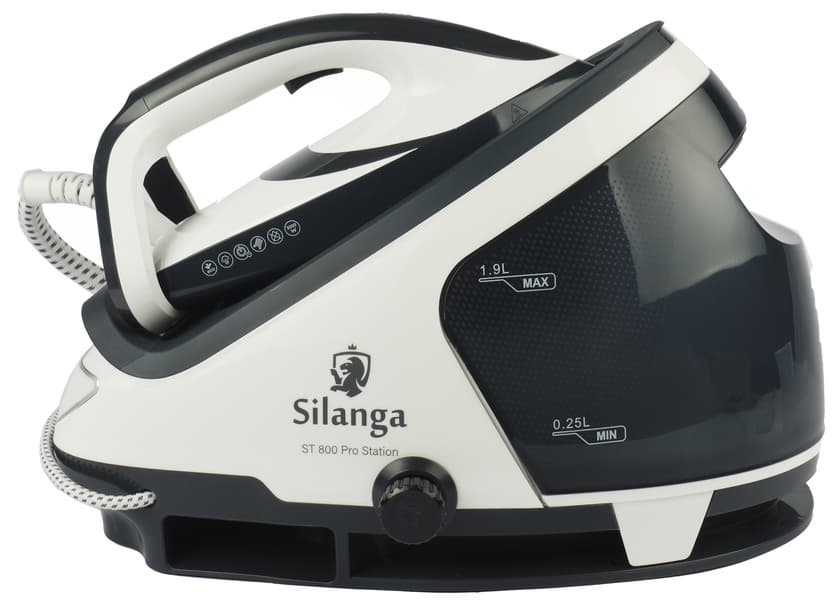 Парогенератор имеет все необходимые функции от автоочистки и защиты от накипи до автоотключения и защиты от подтекания. С его помощью можно гладить в сухом режиме, с постоянным паром, отпаривать вещи на весу (вертикально) и разглаживать особенно устойчивые заломы на тканях, используя паровой удар.