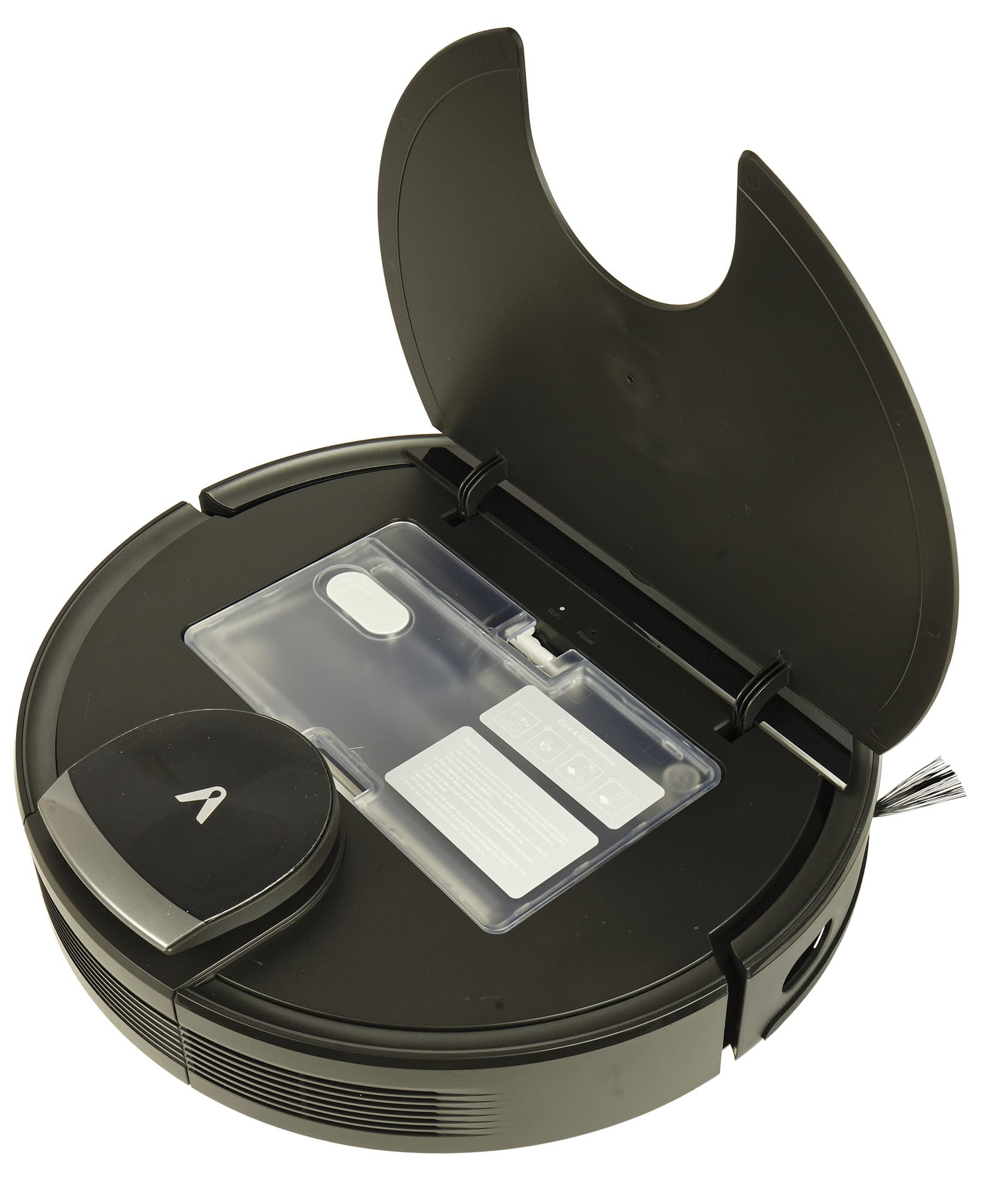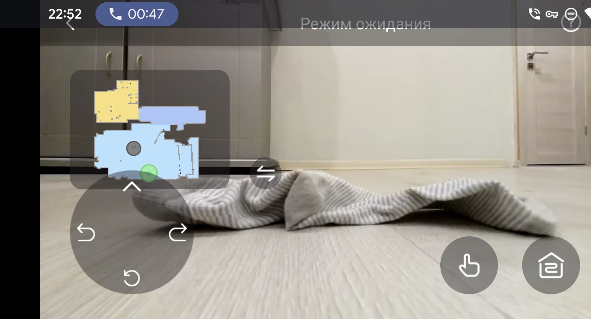 Особенность модели — не только лидар, но и наличие видеокамеры, анализирующей обстановку и распознающей препятствия. Управлять роботом, используя сведения видеосъемки, можно в мобильном приложении: например, направить пылесос туда, куда необходимо, для более тщательной уборки. С помощью камеры робот различает лежащие на полу мелкие предметы лучше, чем с помощью ИК-датчиков, и объезжает их. Чтобы проверить это, мы подбрасывали роботу носок, и он остался незажеванным.