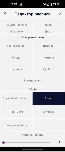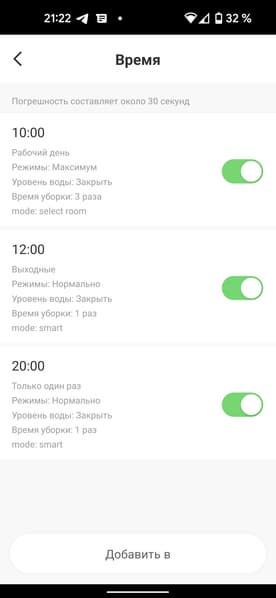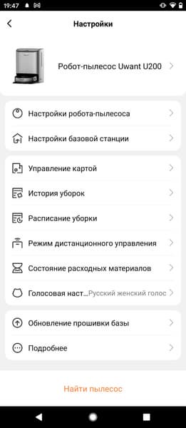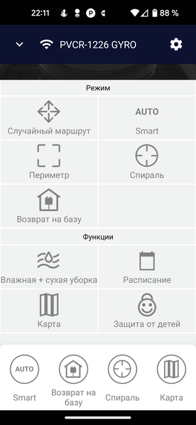 Пылесос обеспечивает сухую и влажную уборку, последняя -— скорее, протирание мелкой пыли, чем полноценное мытье. Вода подается на салфетку из микрофибры из резервуара на корпусе — тут все стандартно. То же можно сказать и об основных возможностях удаленного управления: расписание уборки по дням, часам и комнатам, ограничение зон уборки, увеличение силы всасывания на коврах, информация о состоянии расходников и т. п.