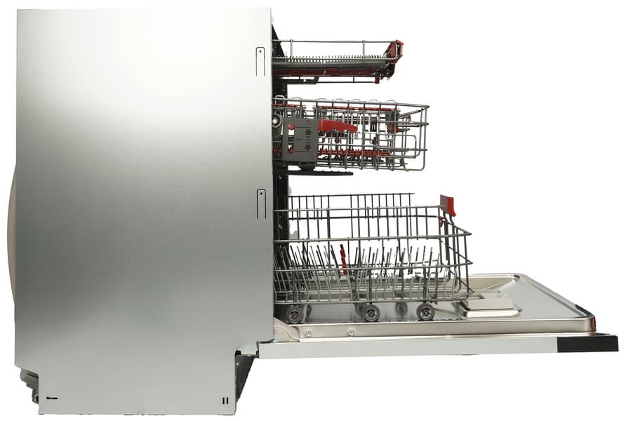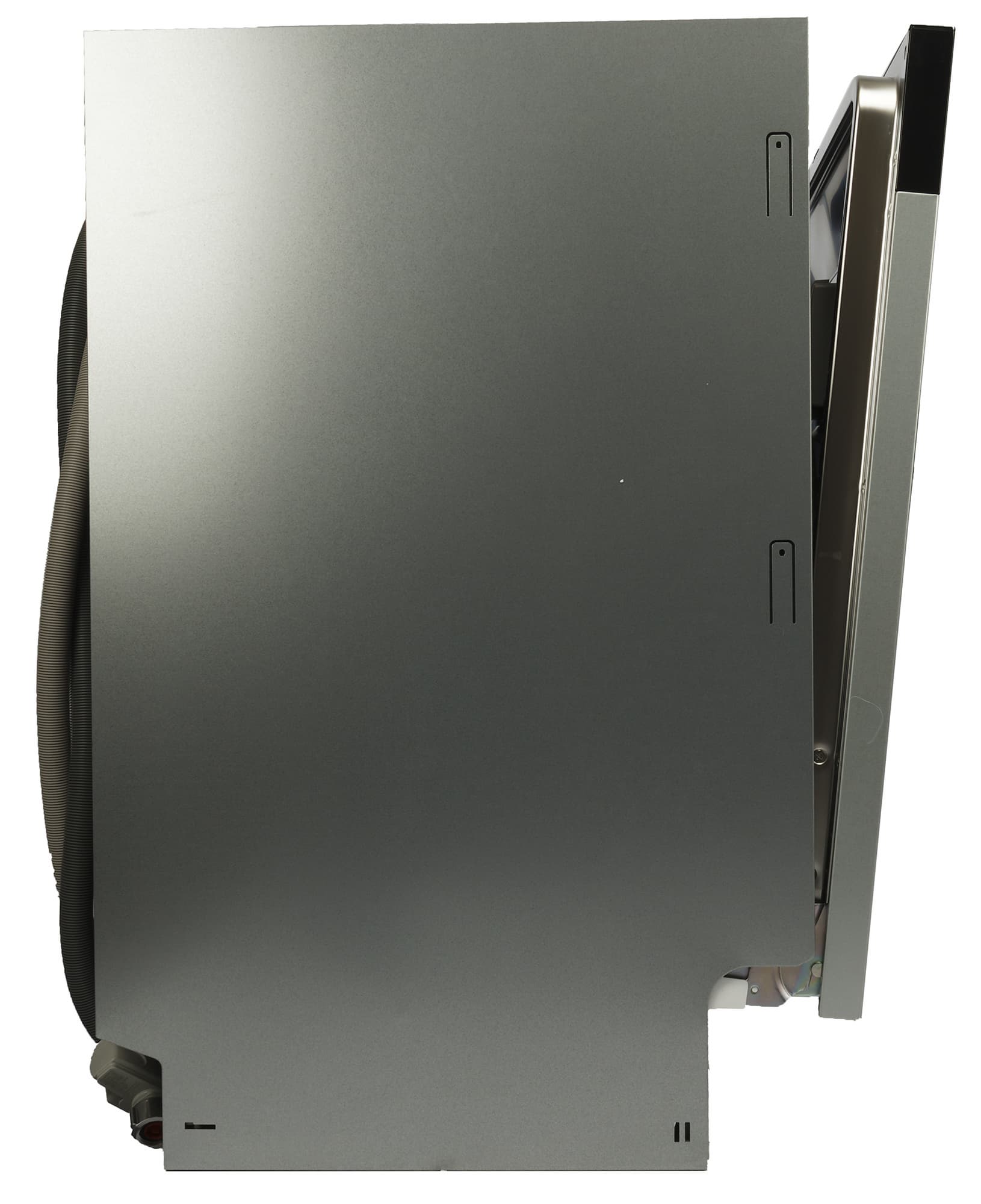 Боковые стенки посудомойки гладкие: ничего примечательного у встраиваемой конструкции нет.