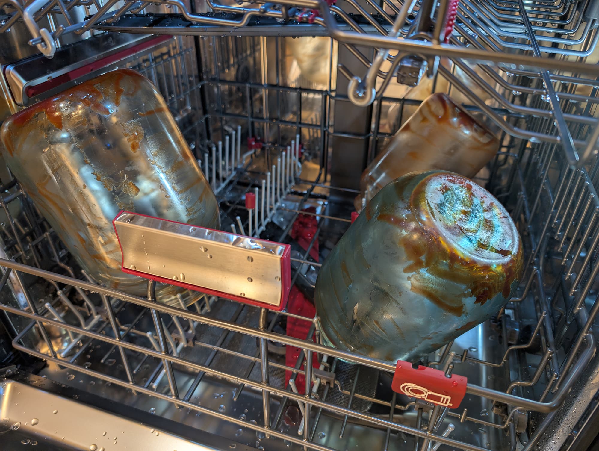 Ни следа томата на стекле не осталось, большие емкости вымылись идеально и отлично высохли.