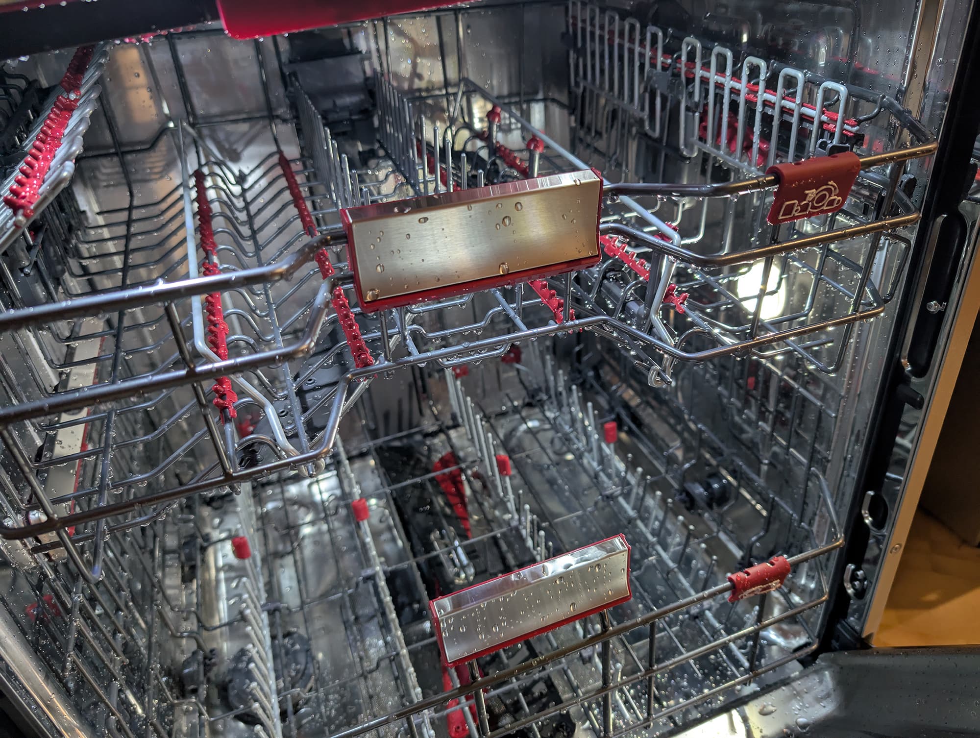 Сосуды мы разместили в нижней корзине, под небольшим наклоном: это оказалось удобно сделать, не складывая направляющие.
