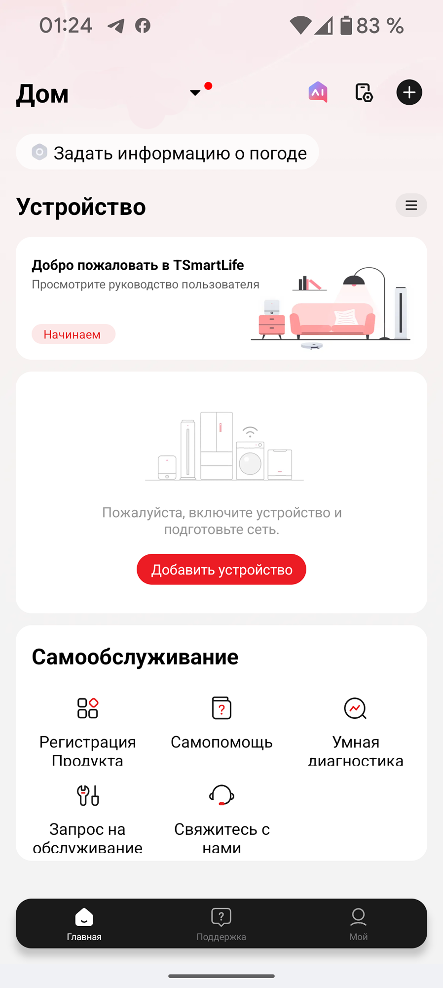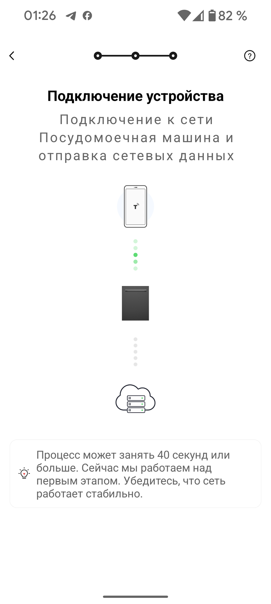 Воспользовавшись ссылкой «Добавить устройство» на главном экране, мы следуем подсказкам, выдаем приложению необходимые права и активируем режим сопряжения на посудомоечной машине.