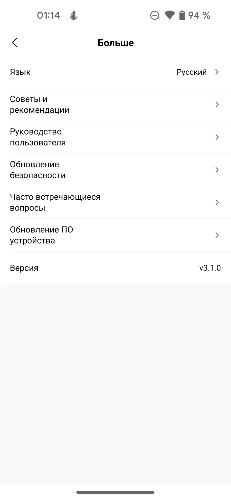 В разделе «Больше» пользователю доступны справочная информация и обновления ПО: самой программы и встроенной в посудомойку прошивки.