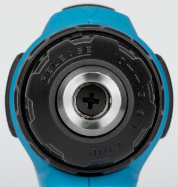 Шуруповерт оснащен механизмом автоматической блокировки шпинделя при выключенном двигателе. Это чрезвычайно удобно — менять оснастку одной рукой. Патрон крепится к шпинделю крестовым болтом с обратной резьбой.