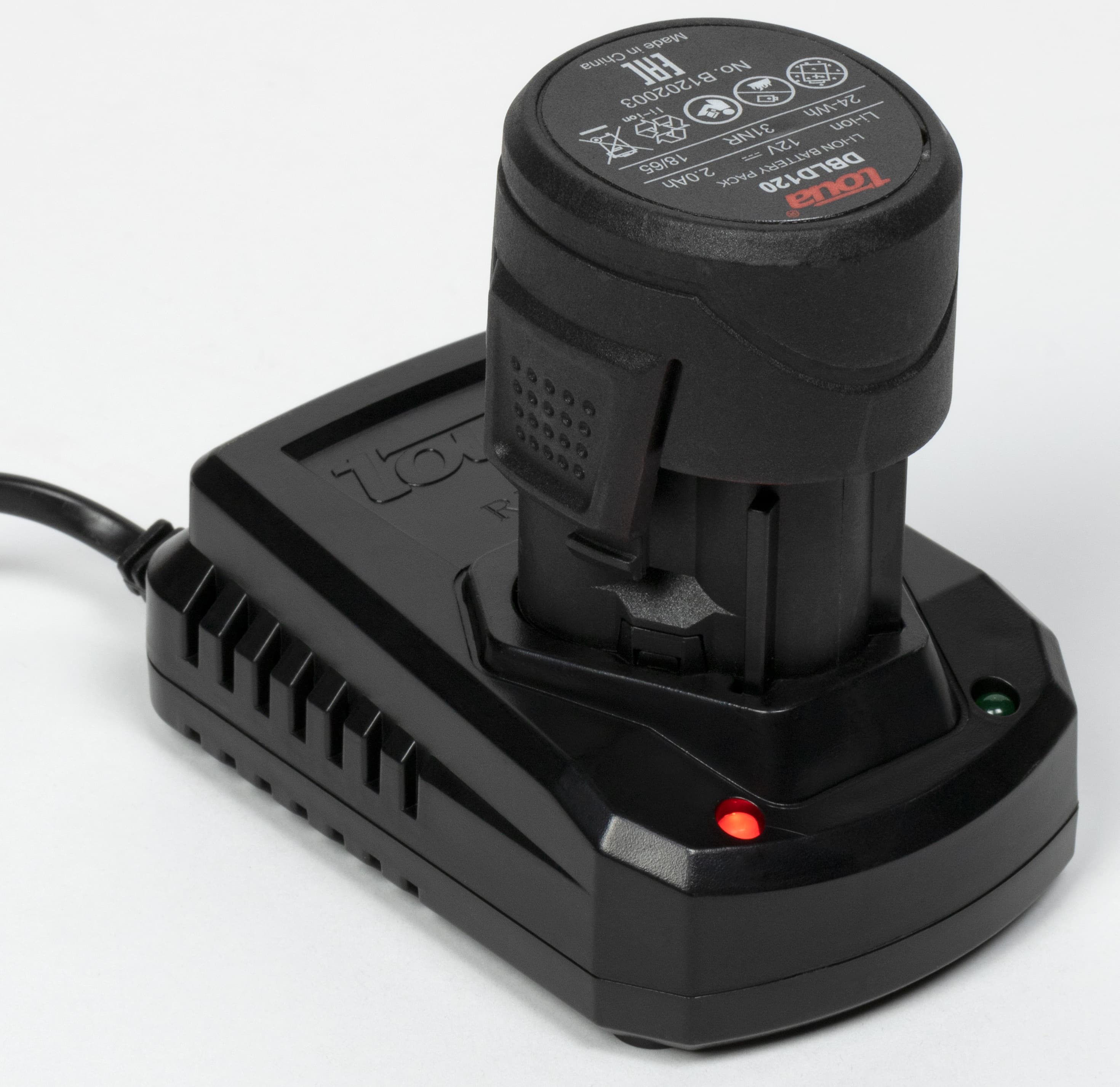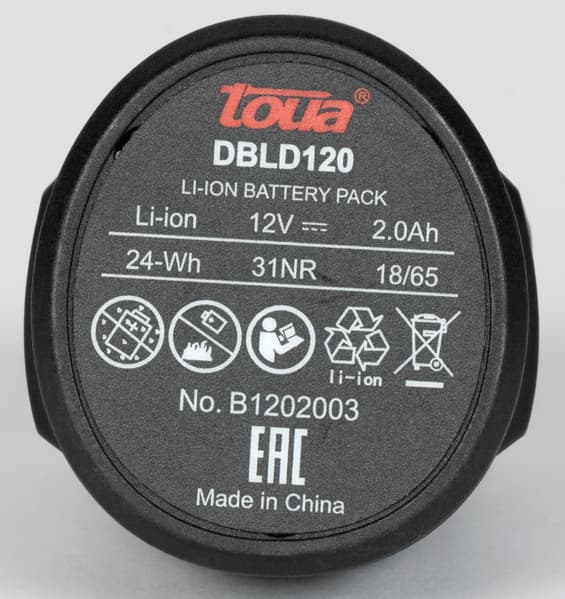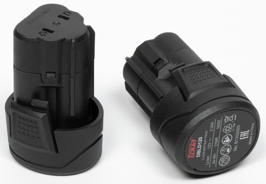 Шуруповерт снабжается двумя батареями емкостью 2000 мА·ч с напряжением 12 В (24 Вт·ч). Индикаторы оставшегося заряда на аккумуляторах отсутствуют.